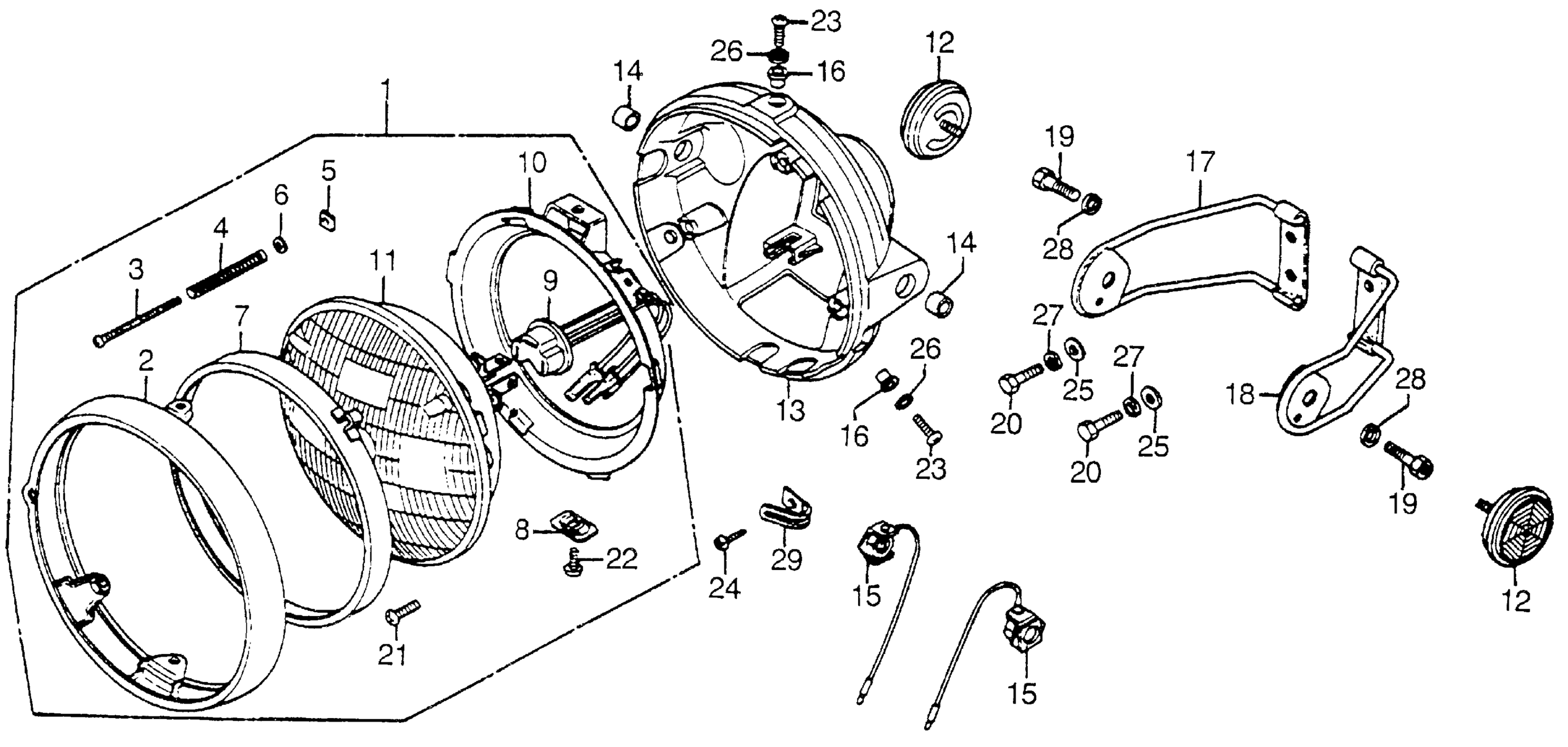 Honda CB750AA (78) 750 HONDAMATIC, JPN, VIN# CB750A-7200001 HEADLIGHT Diagram