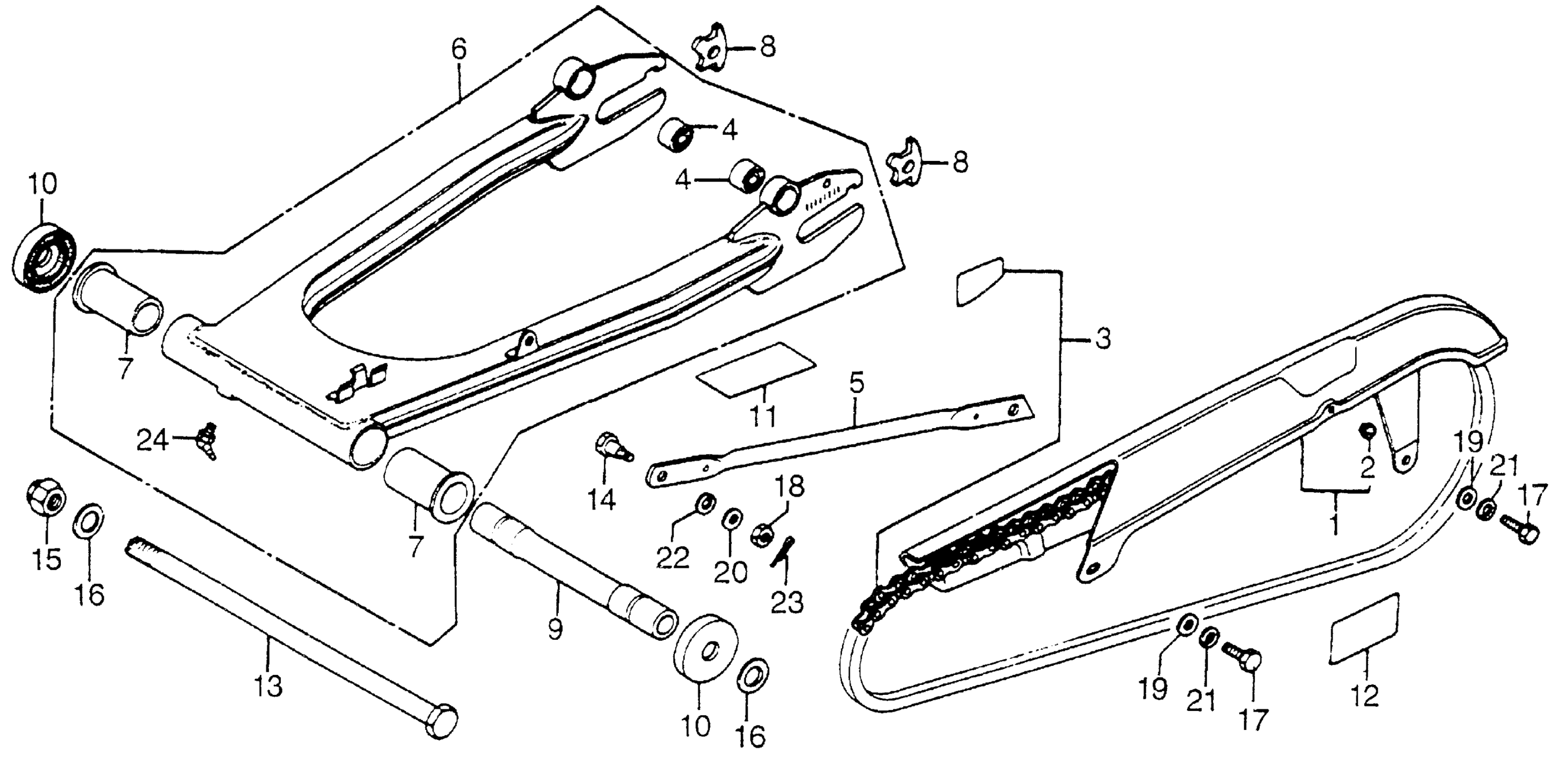 Honda CB750AA (78) 750 HONDAMATIC, JPN, VIN# CB750A-7200001 SWINGARM + CHAIN CASE Diagram