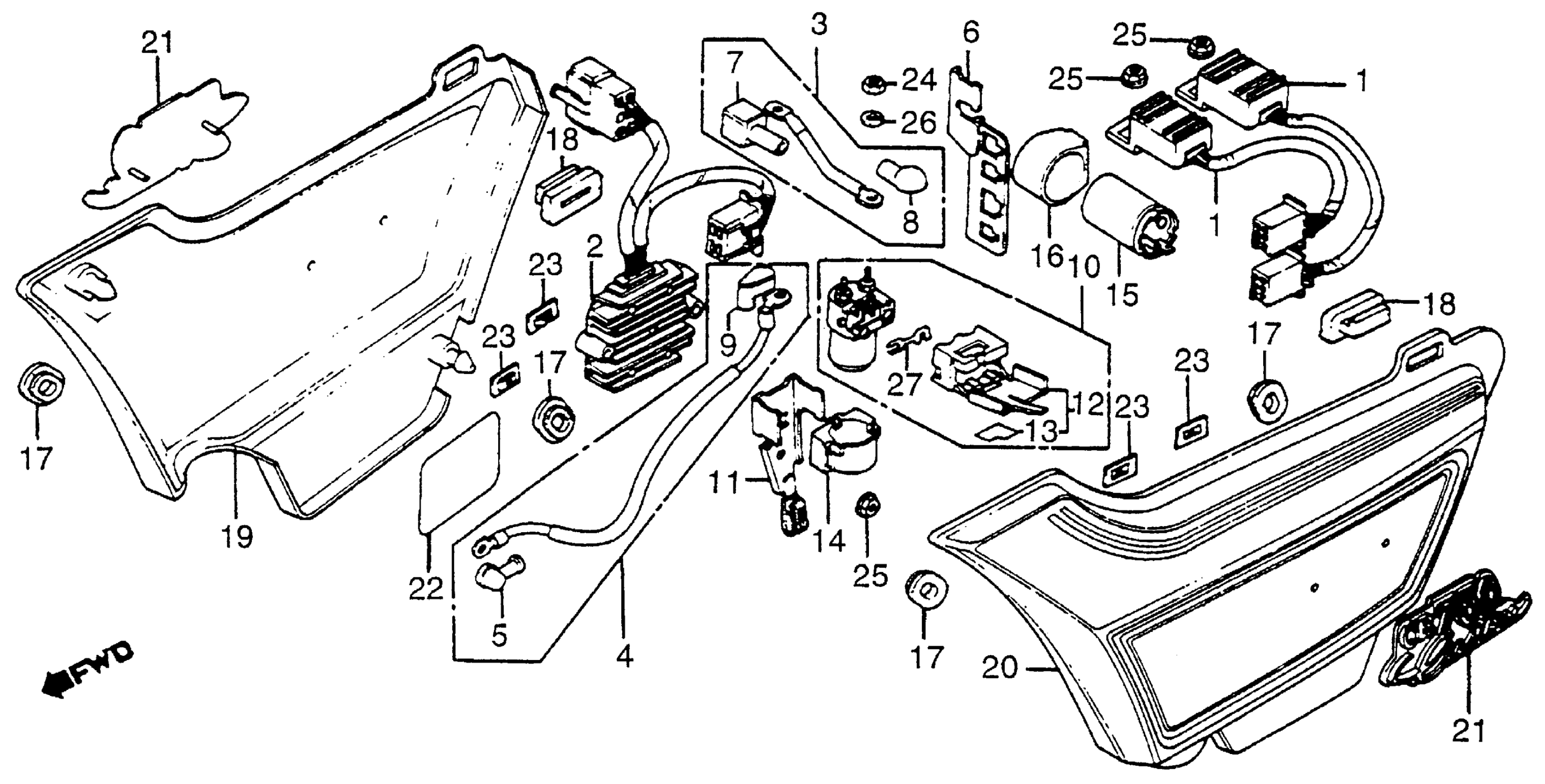 Honda CB750CA (82) 750 CUSTOM, JPN, VIN# JH2RC011-CM200003 TO JH2RC011-CM206708 SIDE COVER + RECTIFIER Diagram