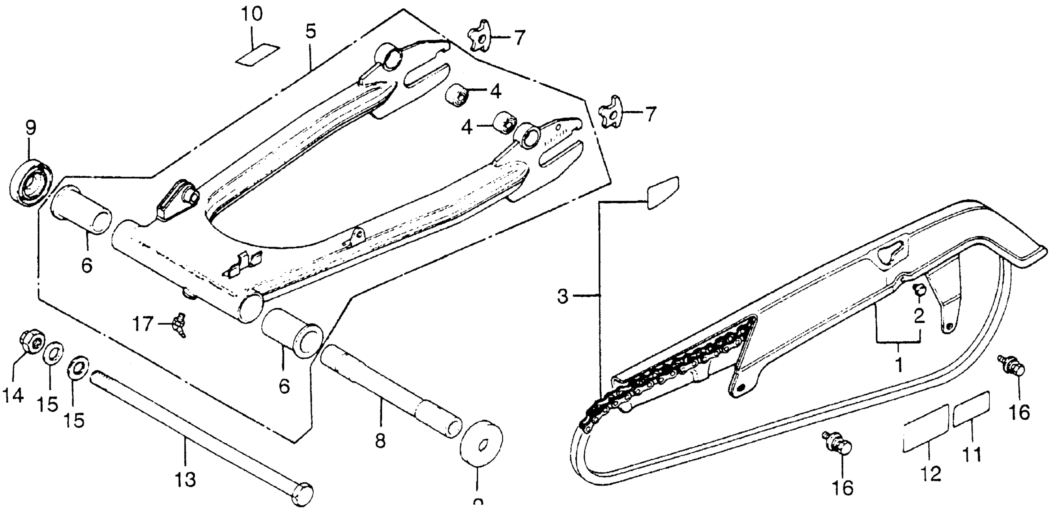 SWINGARM + DRIVE CHAIN + CHAIN CASE