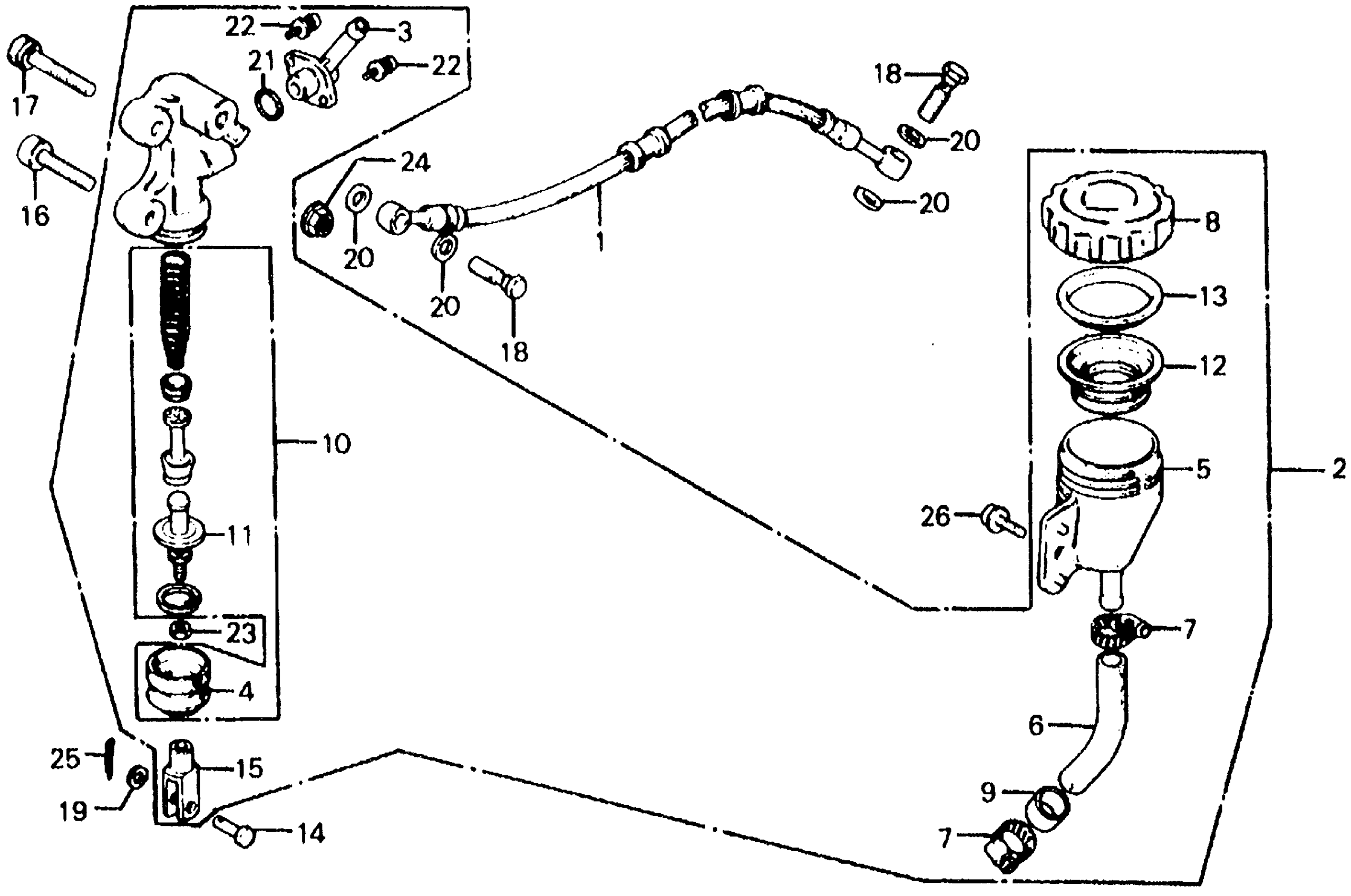 Honda CB750FA (79) 750 SUPER SPORT, JPN, VIN# RC04-2000023 TO RC04-2010669 REAR BRAKE MASTER CYLINDER Diagram