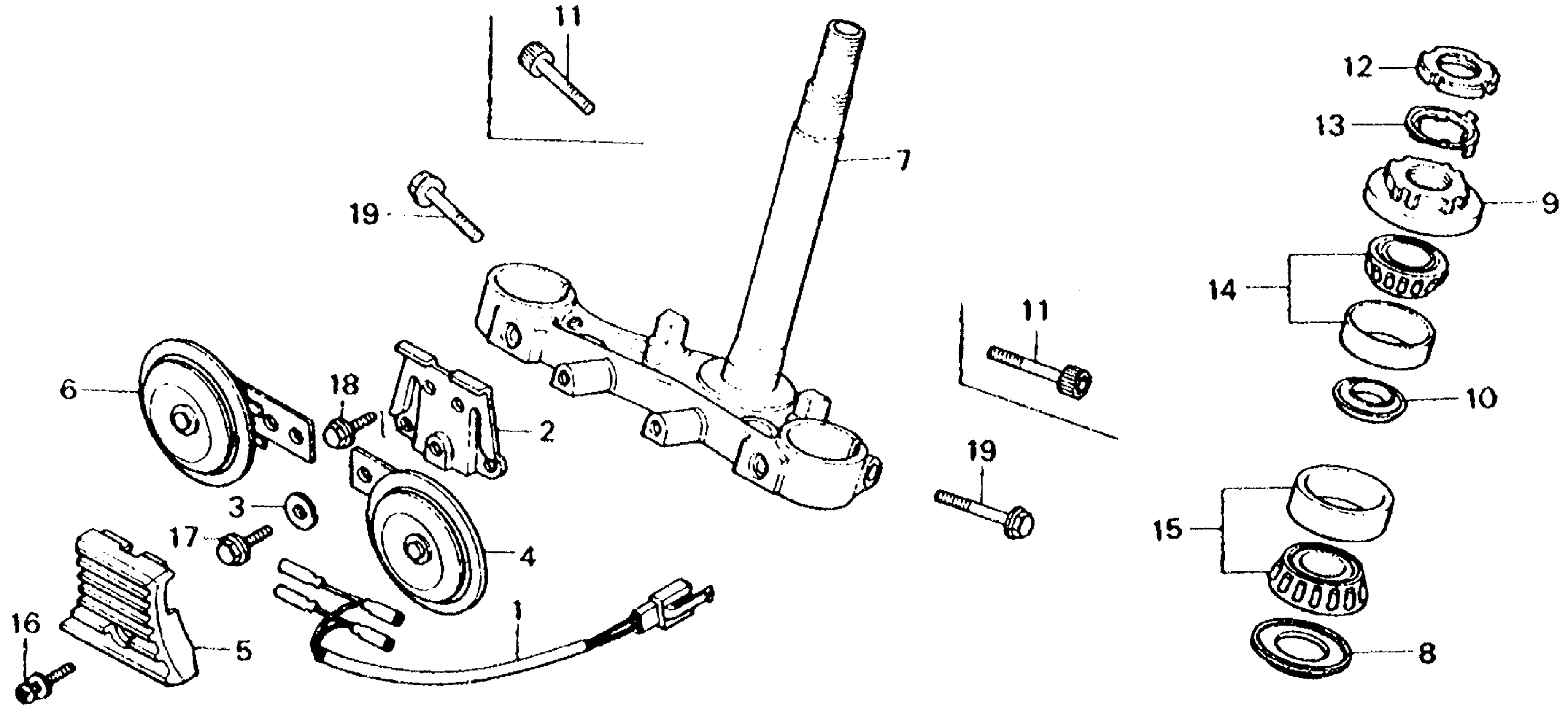 Honda CB750FA (79) 750 SUPER SPORT, JPN, VIN# RC04-2000023 TO RC04-2010669 STEERING STEM + HORN Diagram