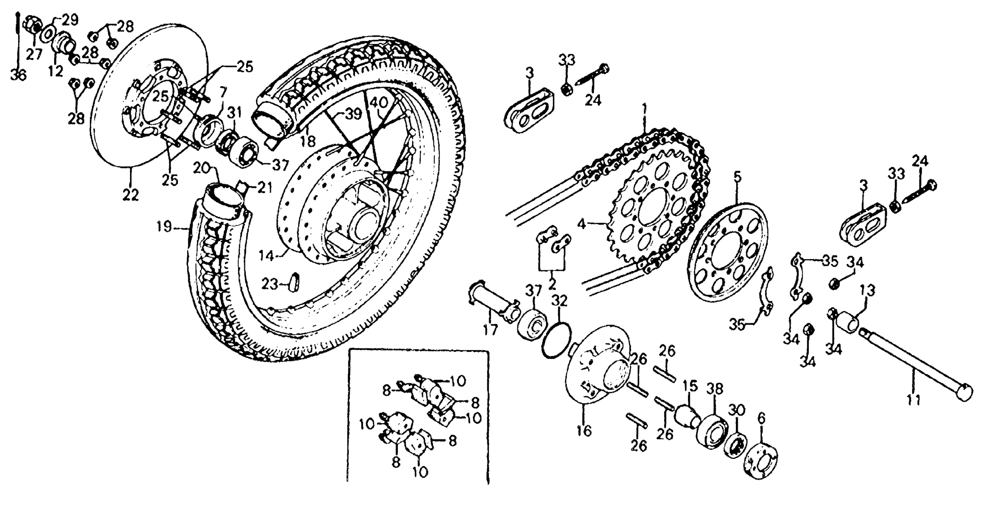 REAR WHEEL + DISC + DRIVE CHAIN