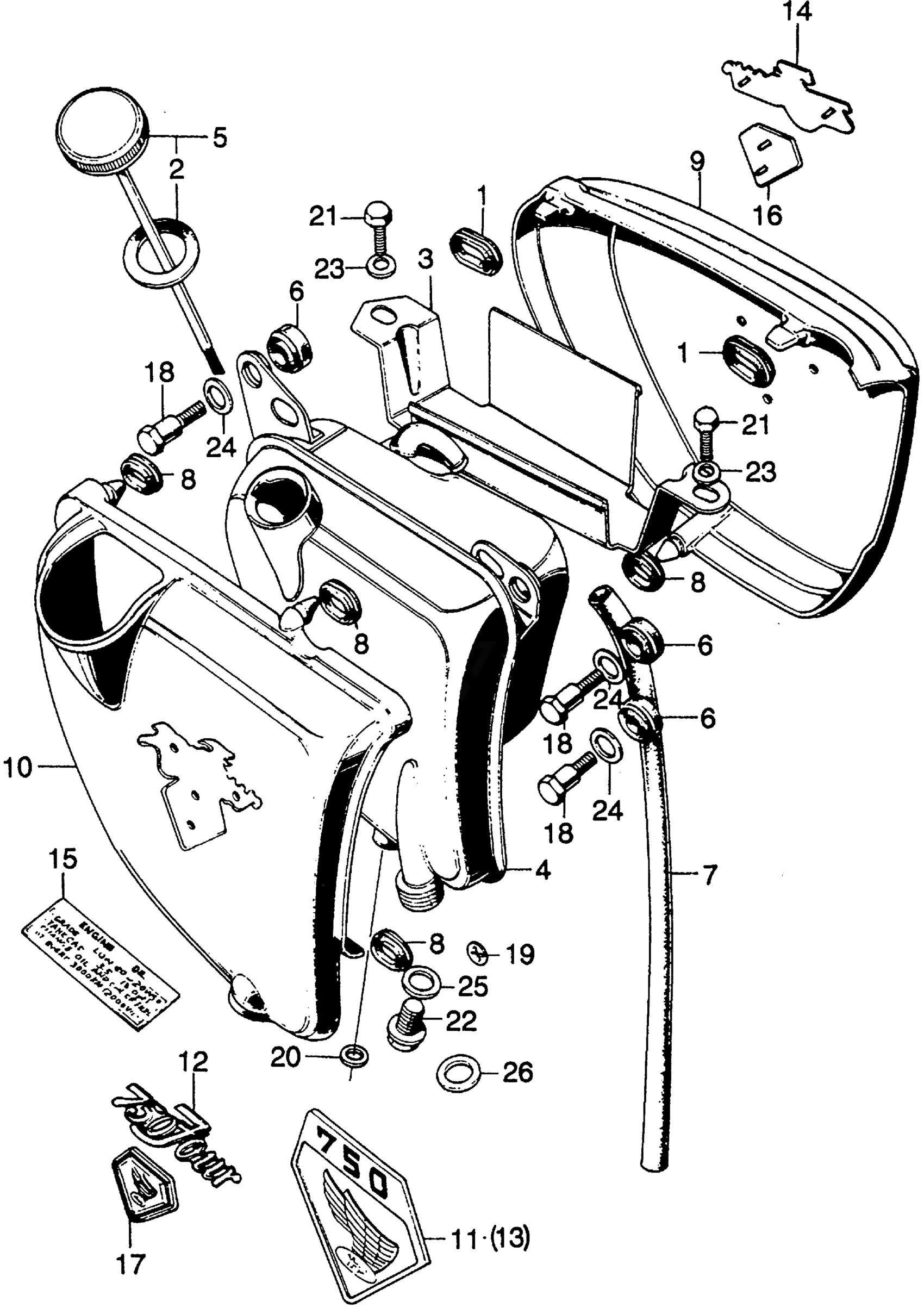 Honda CB750K2A MOTORCYCLE, JPN, VIN# CB750-2000001 OIL TANK + TANK & BATTERY COVER Diagram