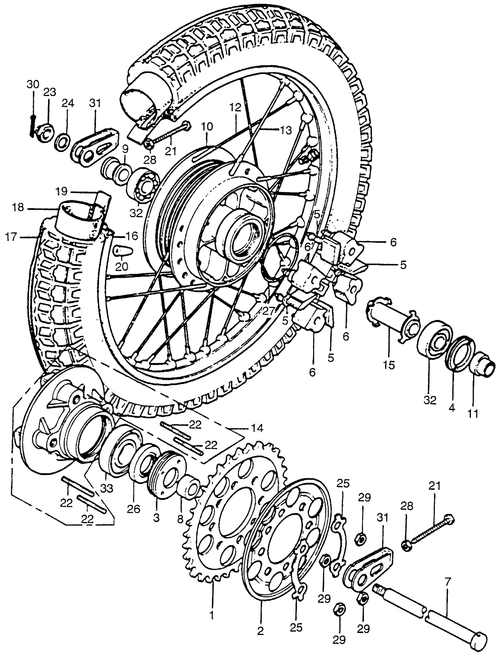 REAR WHEEL + DRIVEN SPROCKET