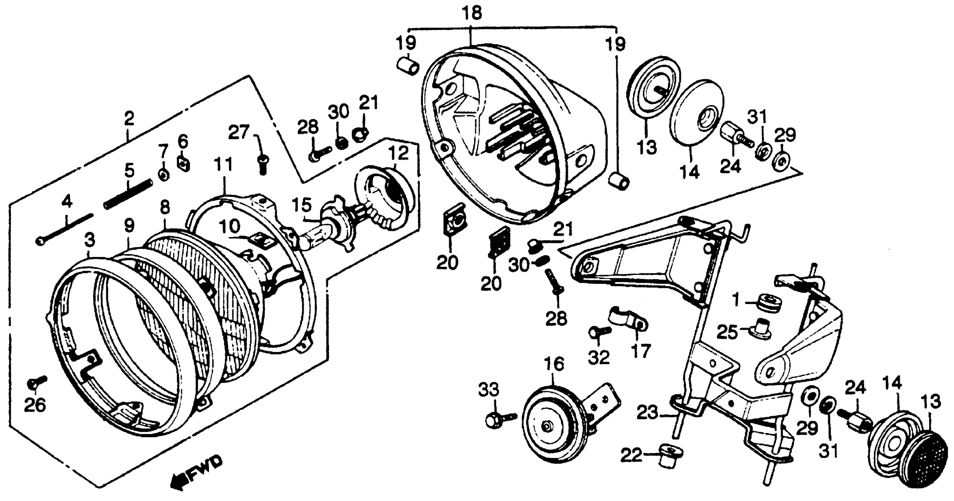 Honda CB750KA (82) 750 FOUR K, JPN, VIN# JH2RC010-CM300003 TO JH2RC010-CM303183 CB750K HEADLIGHT 81-82 Diagram