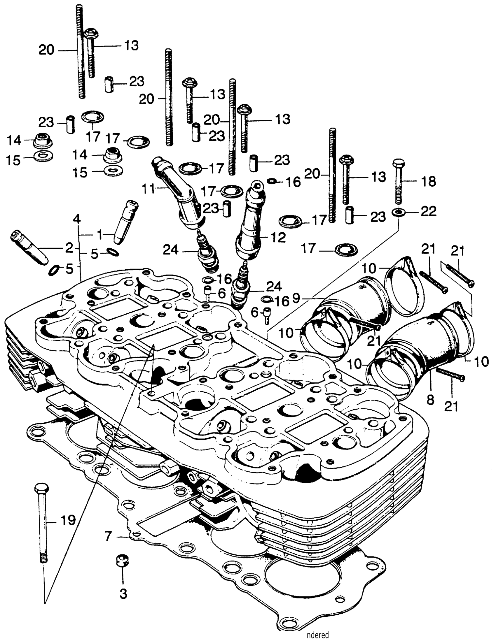 Honda CB750KA MOTORCYCLE, JPN, VIN# CB750-1000001 CYLINDER HEAD + INSULATOR Diagram