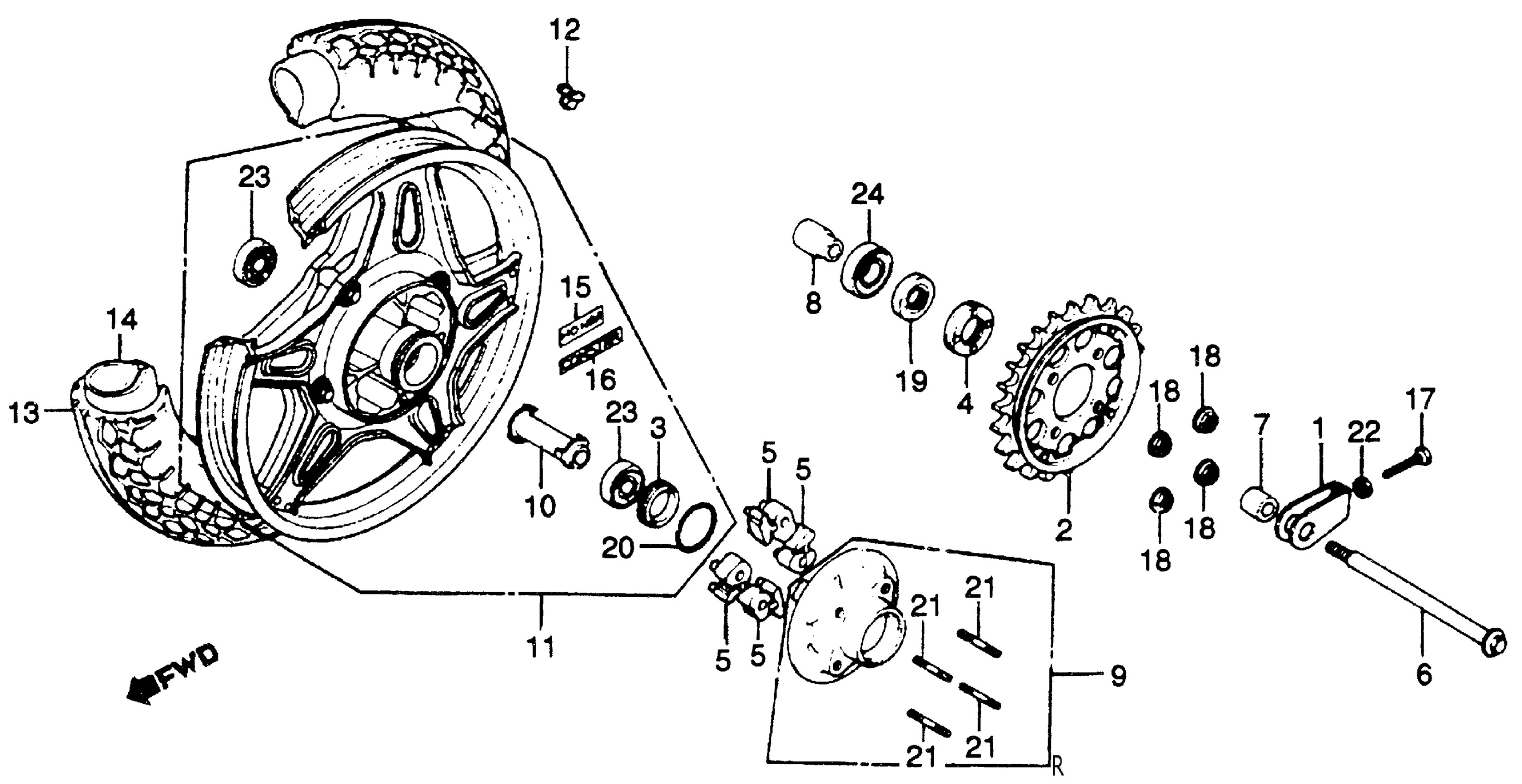Honda CB750LA (79) MOTORCYCLE, JPN, VIN# RC01-3000006 TO RC01-3008810 CB750L REAR WHEEL Diagram