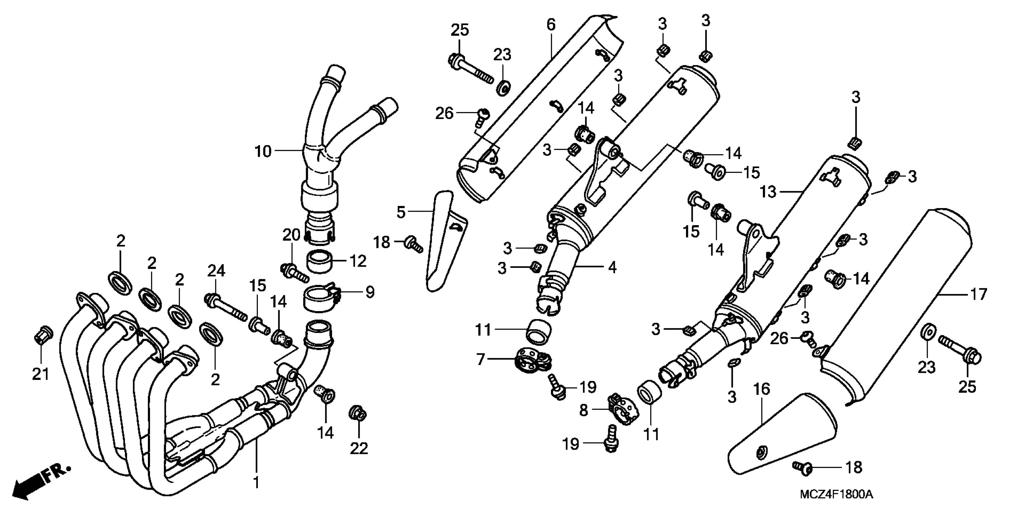 Honda CB900FA (03) 919, JPN, VIN# JH2SC480-3M100001 TO JH2SC480-3M199999 MUFFLER Diagram
