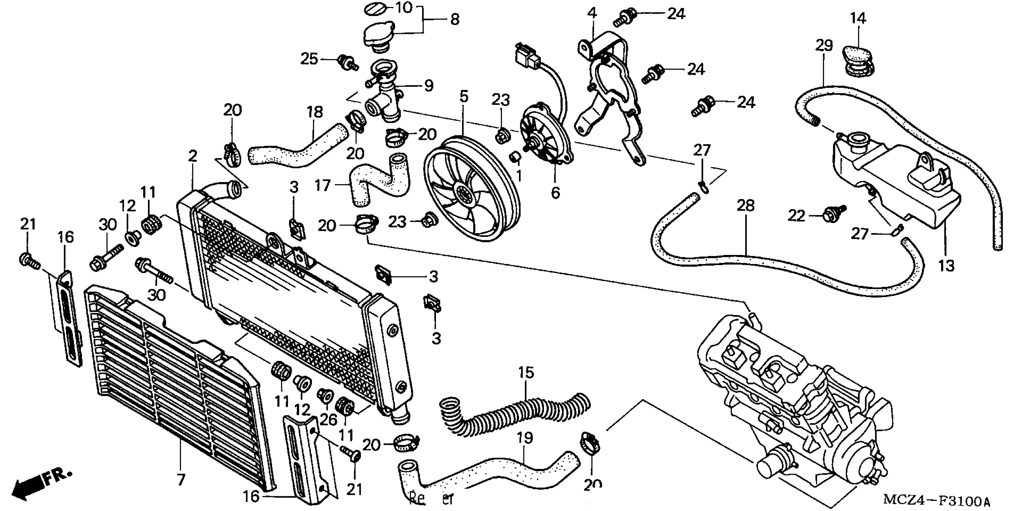 Honda CB900FA (07) 919, JPN, VIN# JH2SC480-7M500001 RADIATOR Diagram