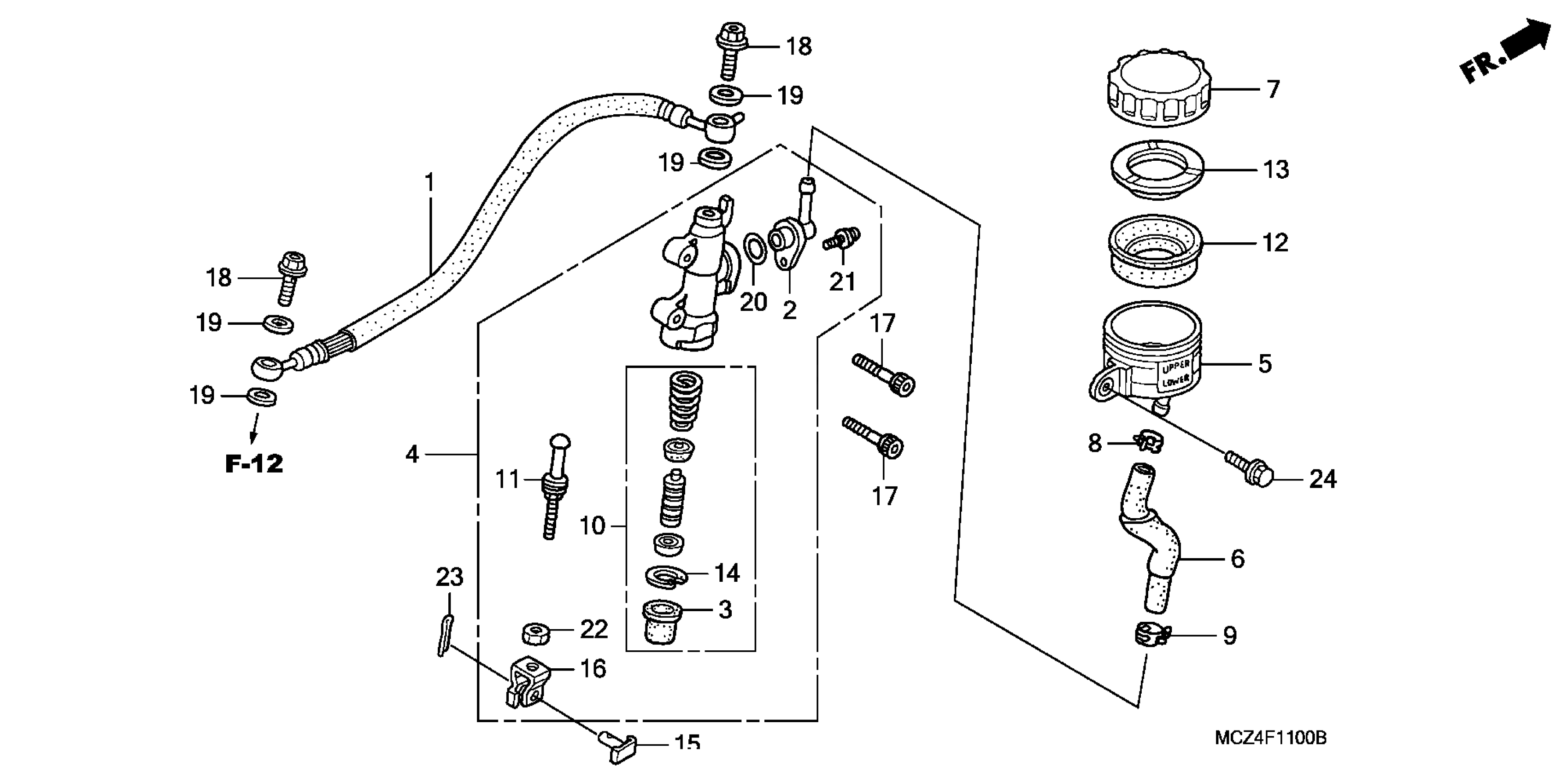 Honda CB900FA (07) 919, JPN, VIN# JH2SC480-7M500001 REAR BRAKE MASTER CYLINDER Diagram