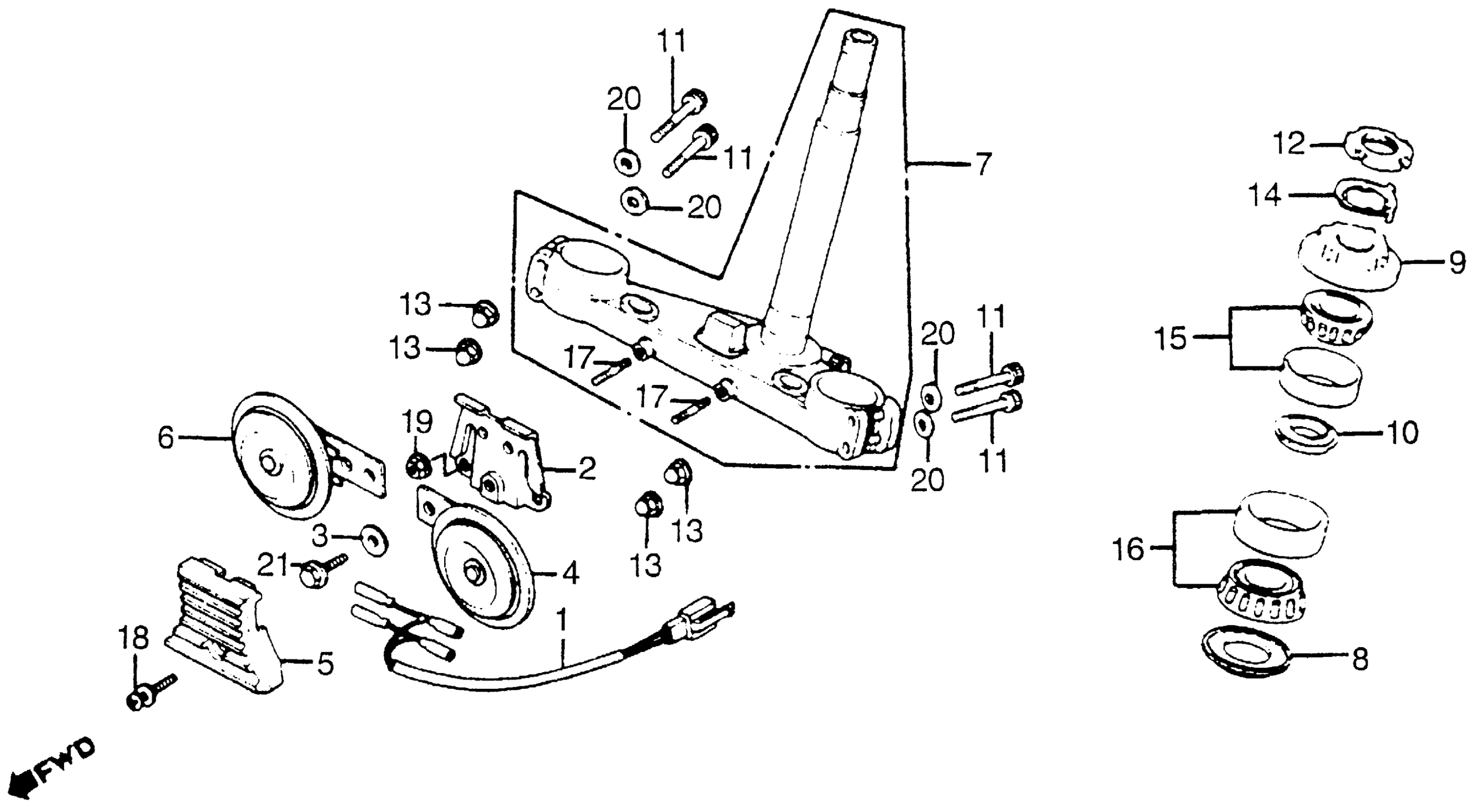Honda CB900FA (82) 900 SUPER SPORT, JPN, VIN# JH2SC010-CM100003 TO JH2SC010-CM109271 STEERING STEM + HORN Diagram