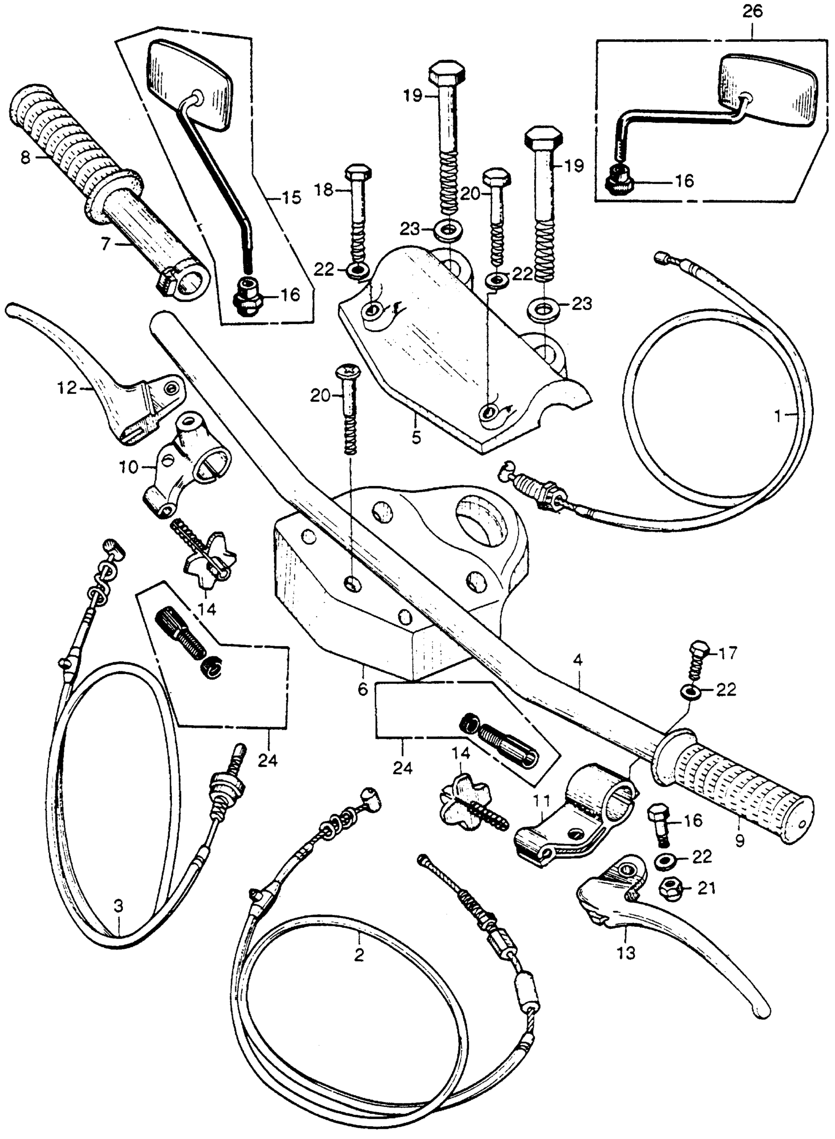 HANDLEBAR + CONTROL LEVERS + CABLES