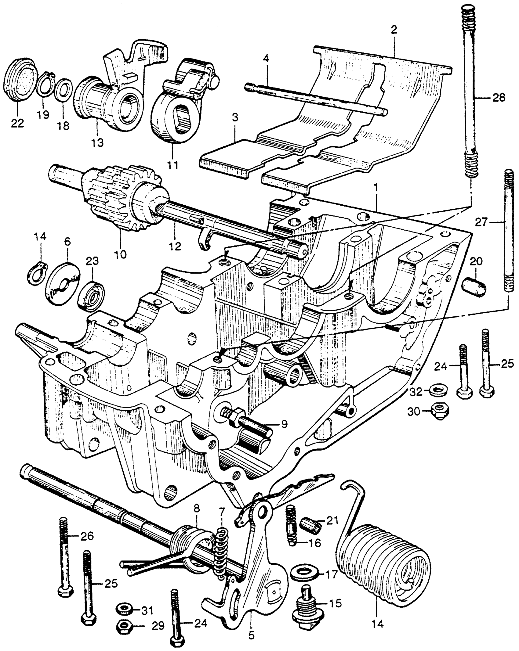 LOWER CRANKCASE + KICK STARTER
