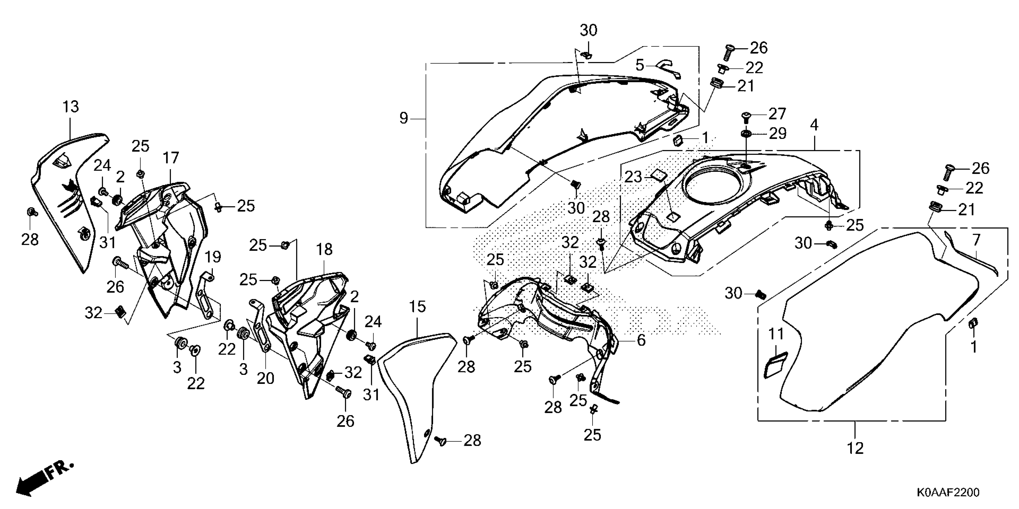 Honda CBF300NAAC (25) MOTORCYCLE, THA, VIN# MLHNC555-S5500001 SHROUD@TANK COVER Diagram