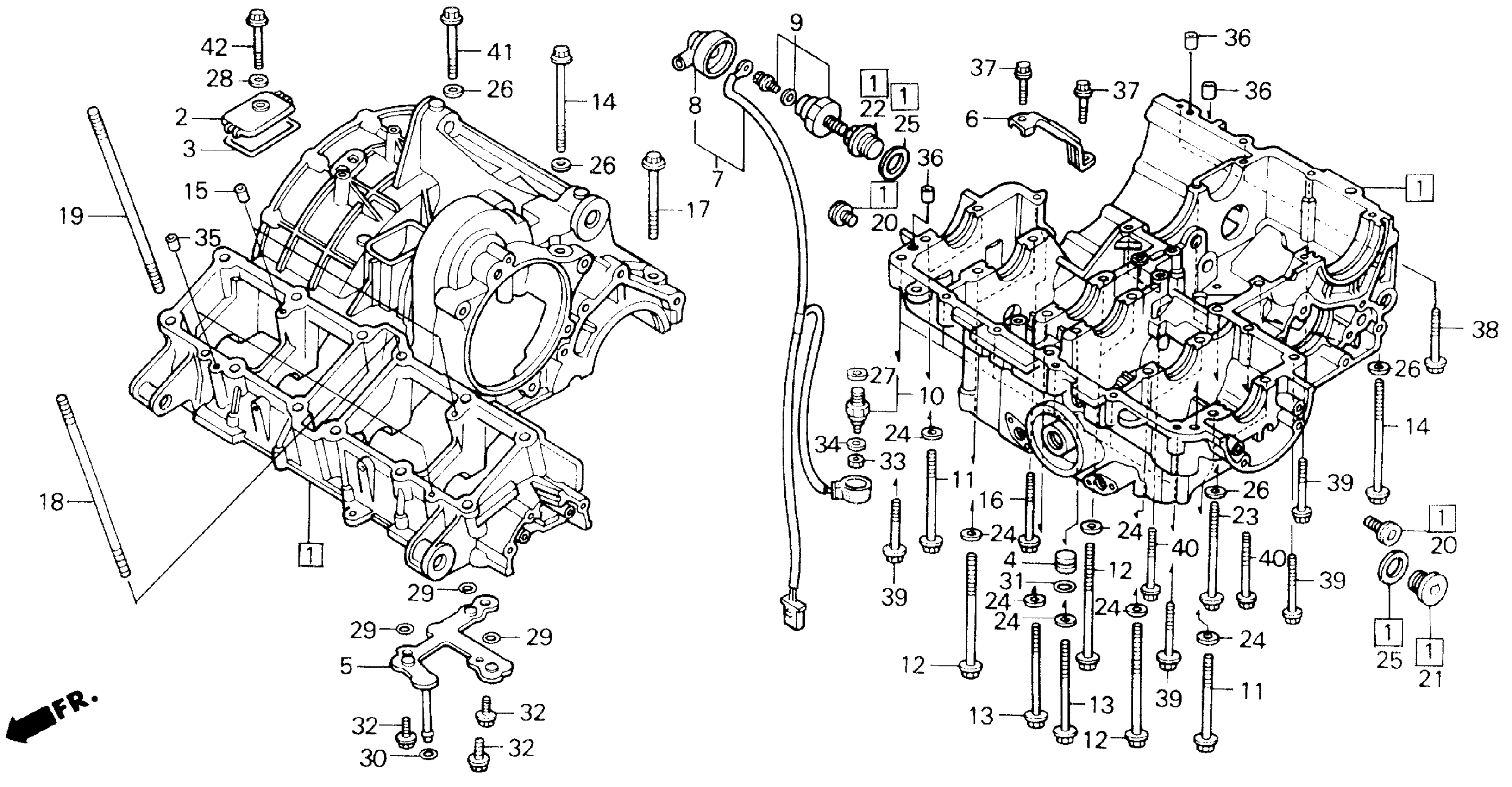 Honda CBR1000FA (87) 1000 HURRICANE, USA, VIN# 1HFSC210-HA001001 TO 1HFSC210-HA004655 CRANKCASE Diagram