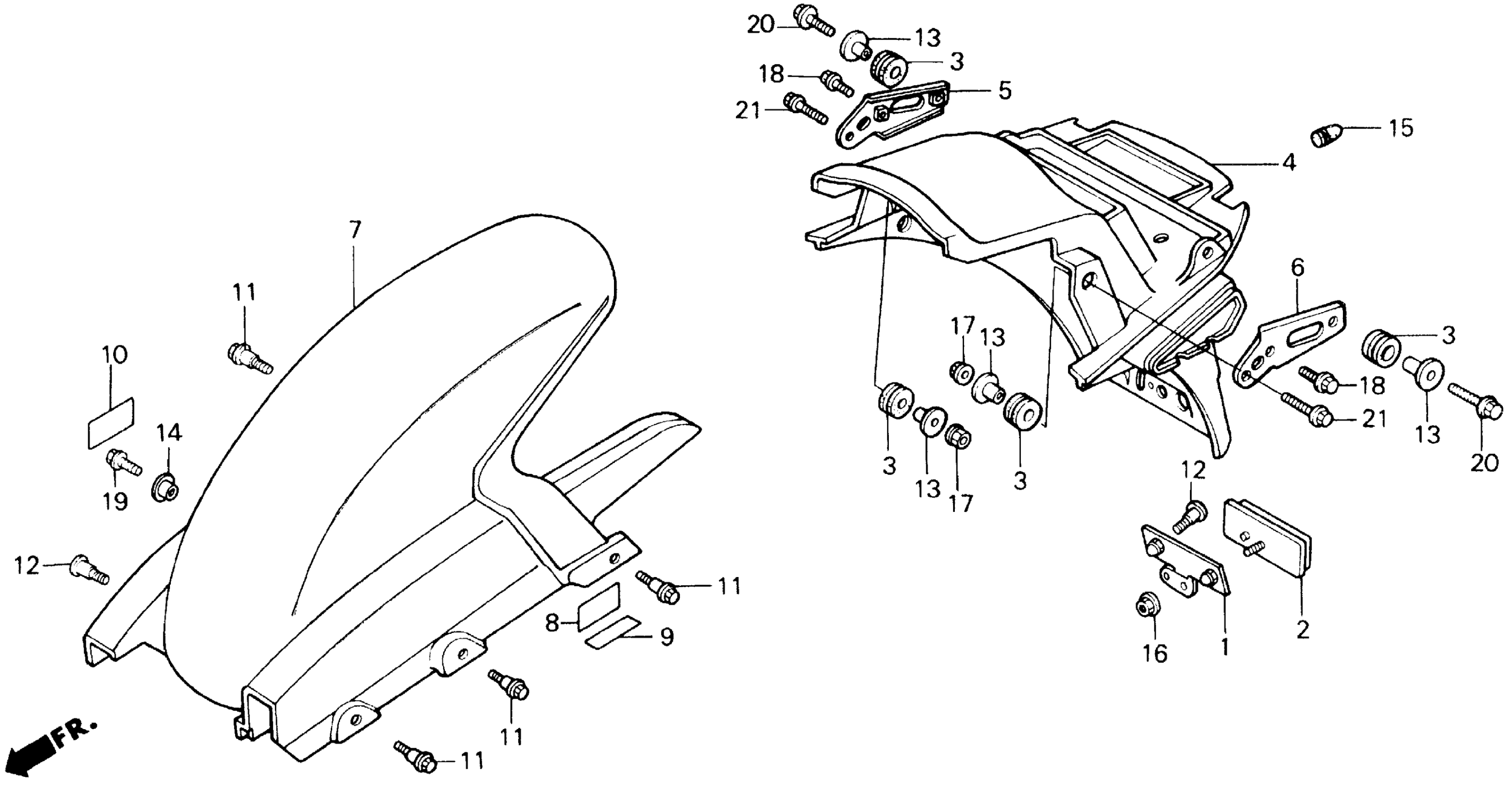 Honda CBR1000FA (88) HURRICANE 1000, USA, VIN# 1HFSC210-JA100001 TO 1HFSC210-JA100480 REAR FENDER Diagram
