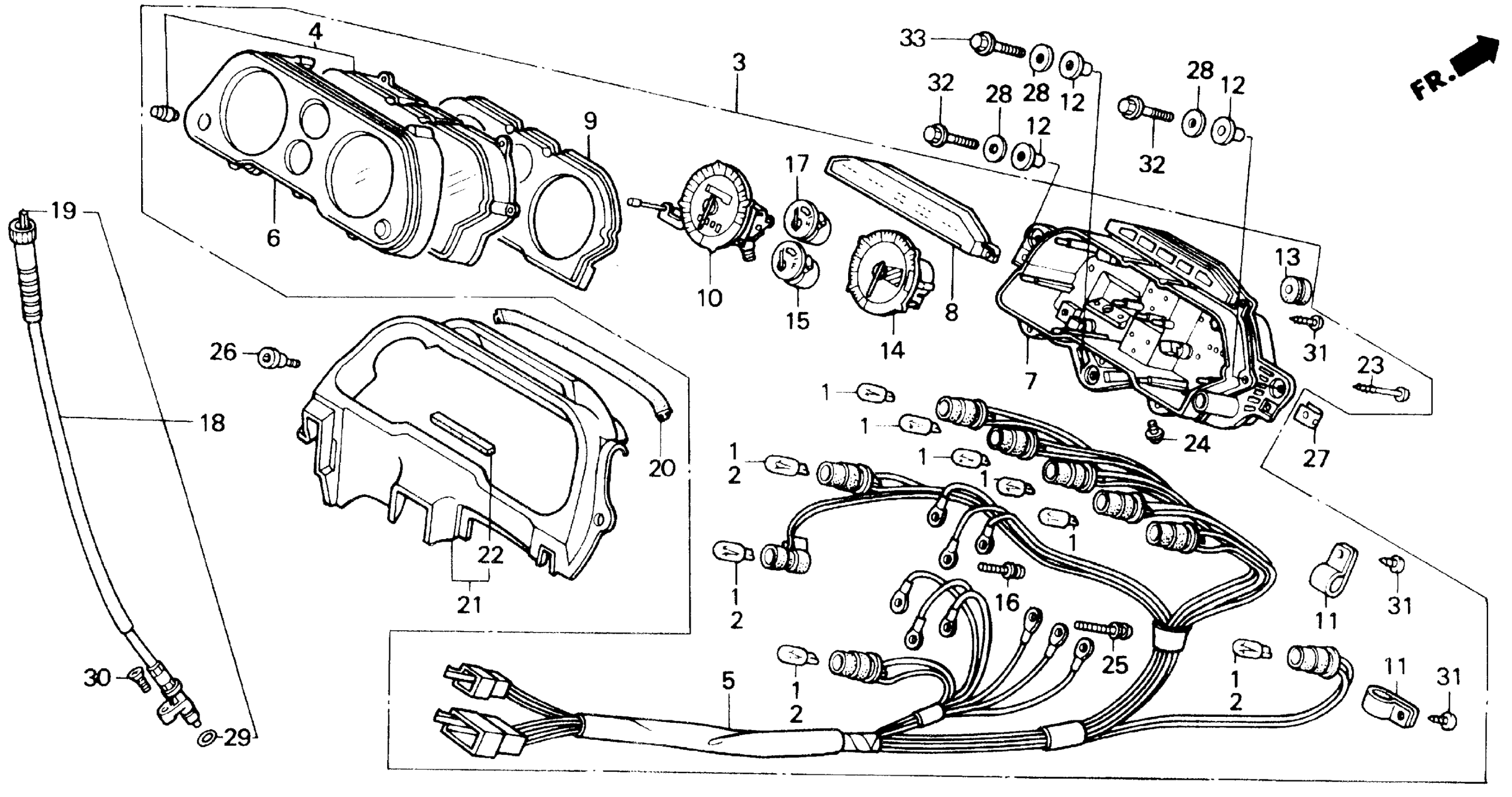 Honda CBR1000FA (88) HURRICANE 1000, USA, VIN# 1HFSC210-JA100001 TO 1HFSC210-JA100480 SPEEDOMETER + TACHOMETER Diagram
