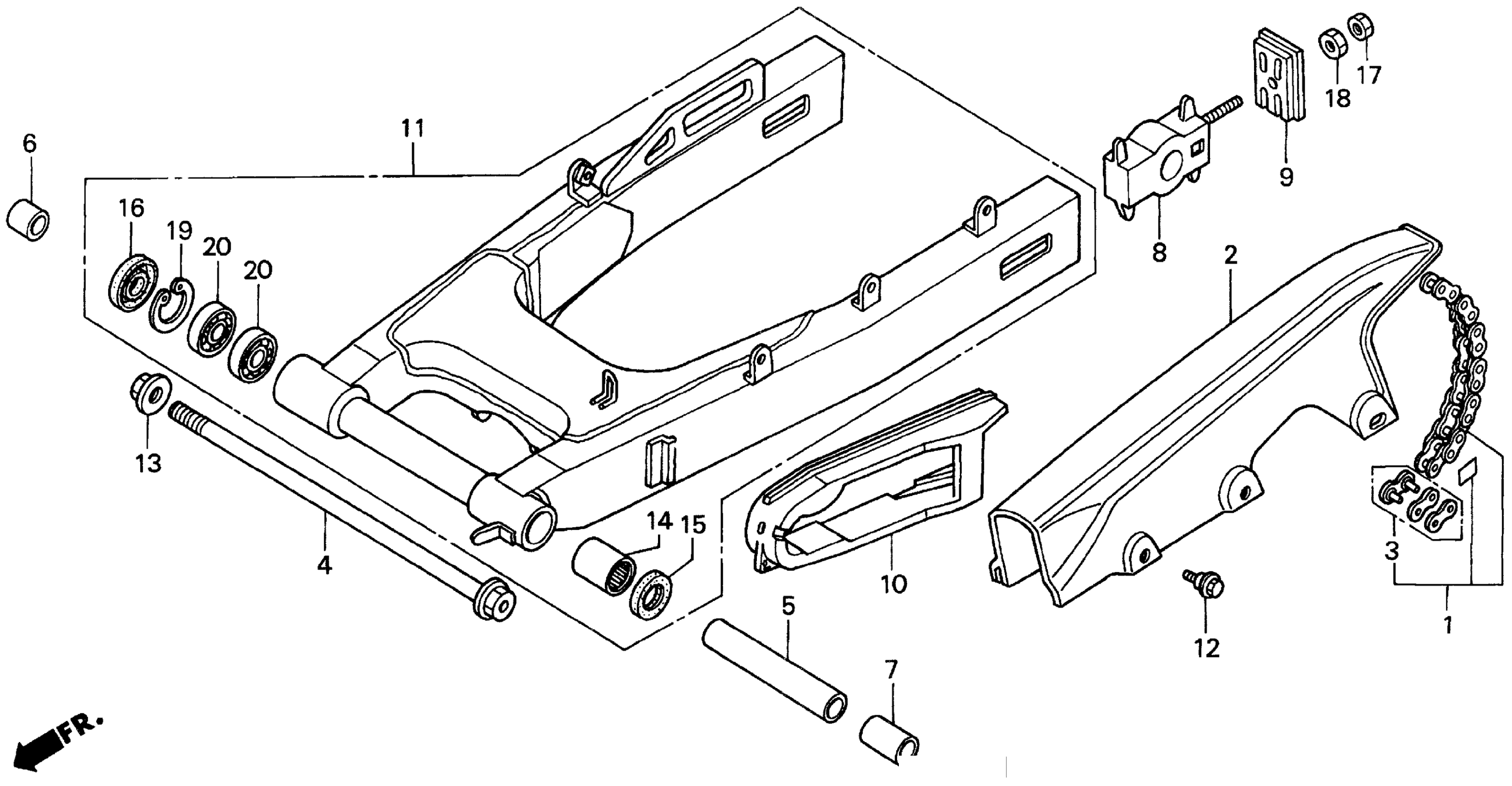 Honda CBR1000FA (96) MOTORCYCLE, JPN, VIN# JH2SC240-TM500001 SWINGARM Diagram