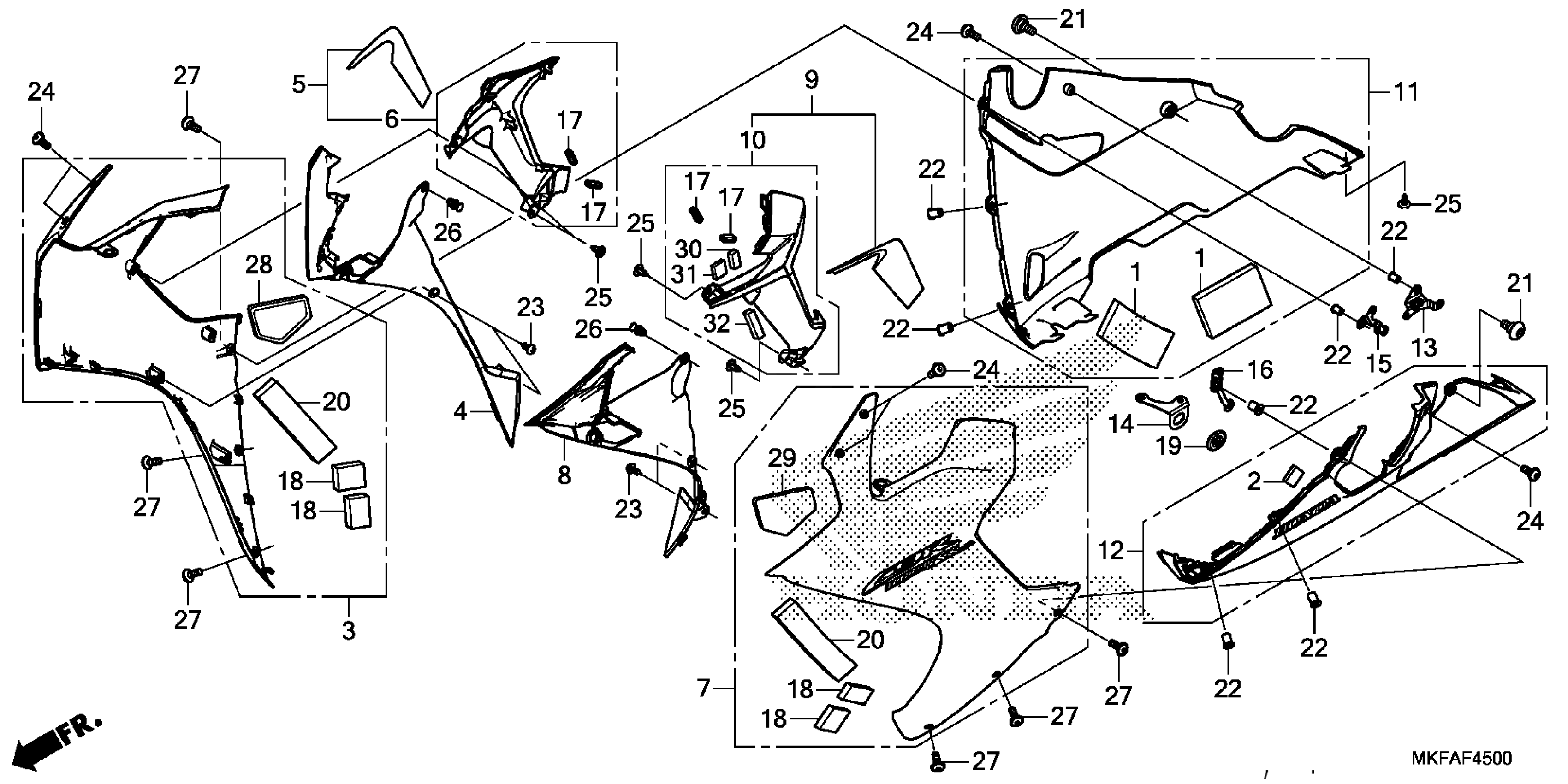 Honda CBR1000RA2AC (19) MOTORCYCLE, JPN, VIN# JH2SC775-KK200001 TO JH2SC775-KK299999 MIDDLE COWL Diagram