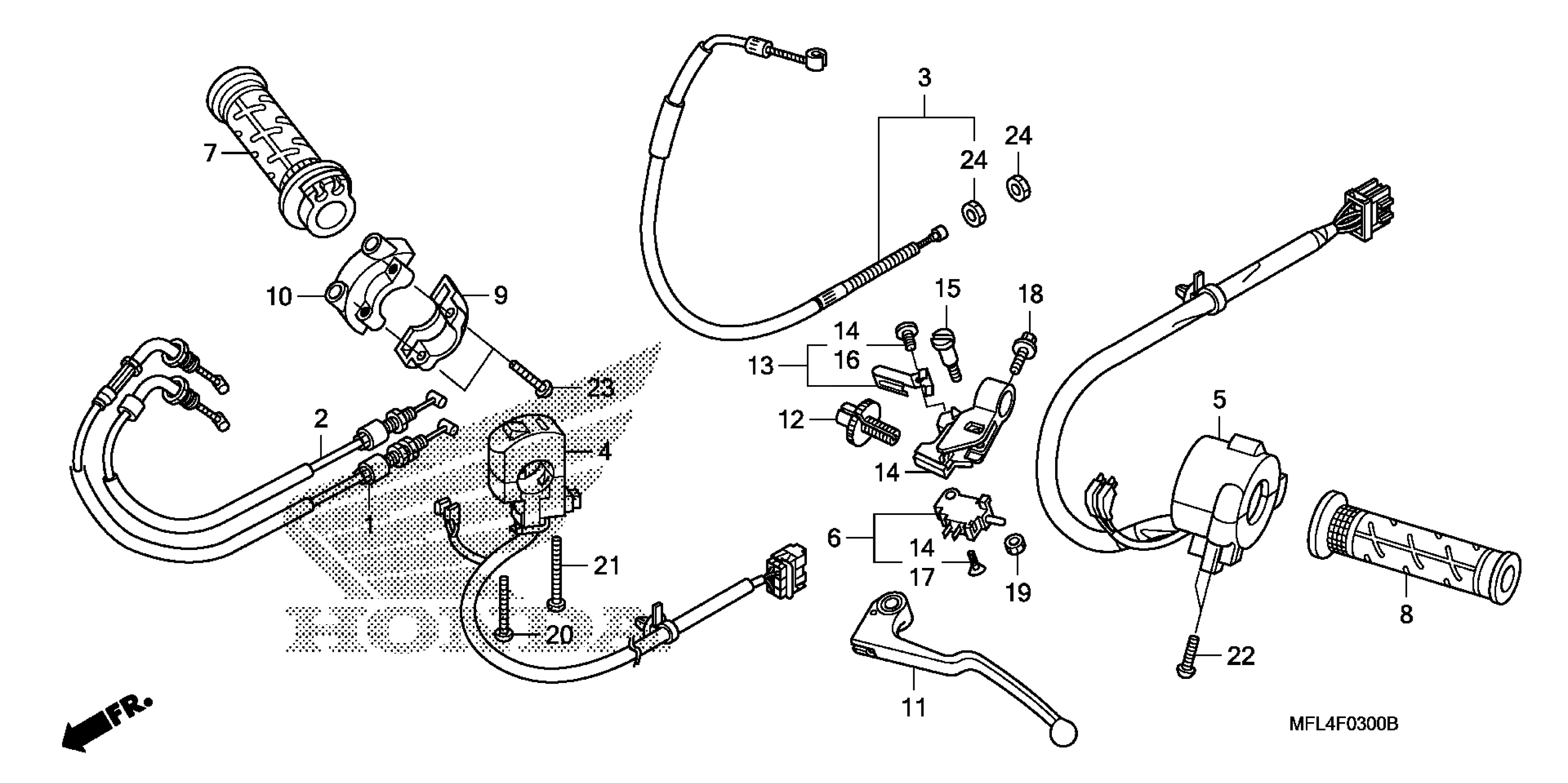 Honda CBR1000RAAC (11) MOTORCYCLE, JPN, VIN# JH2SC598-BK200001 HANDLE LEVER@SWITCH@CABLE Diagram