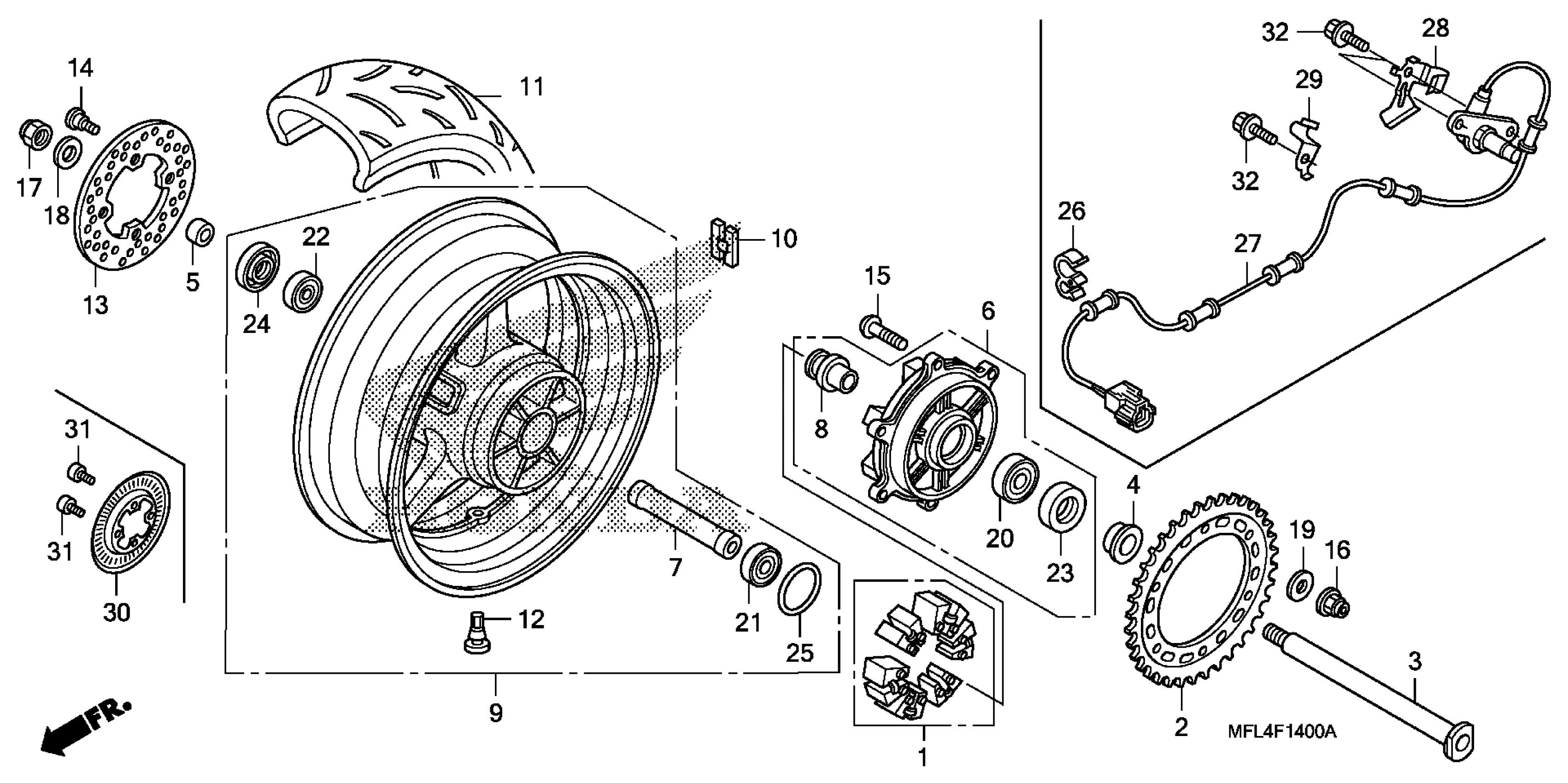 Honda CBR1000RAAC (11) MOTORCYCLE, JPN, VIN# JH2SC598-BK200001 REAR WHEEL Diagram