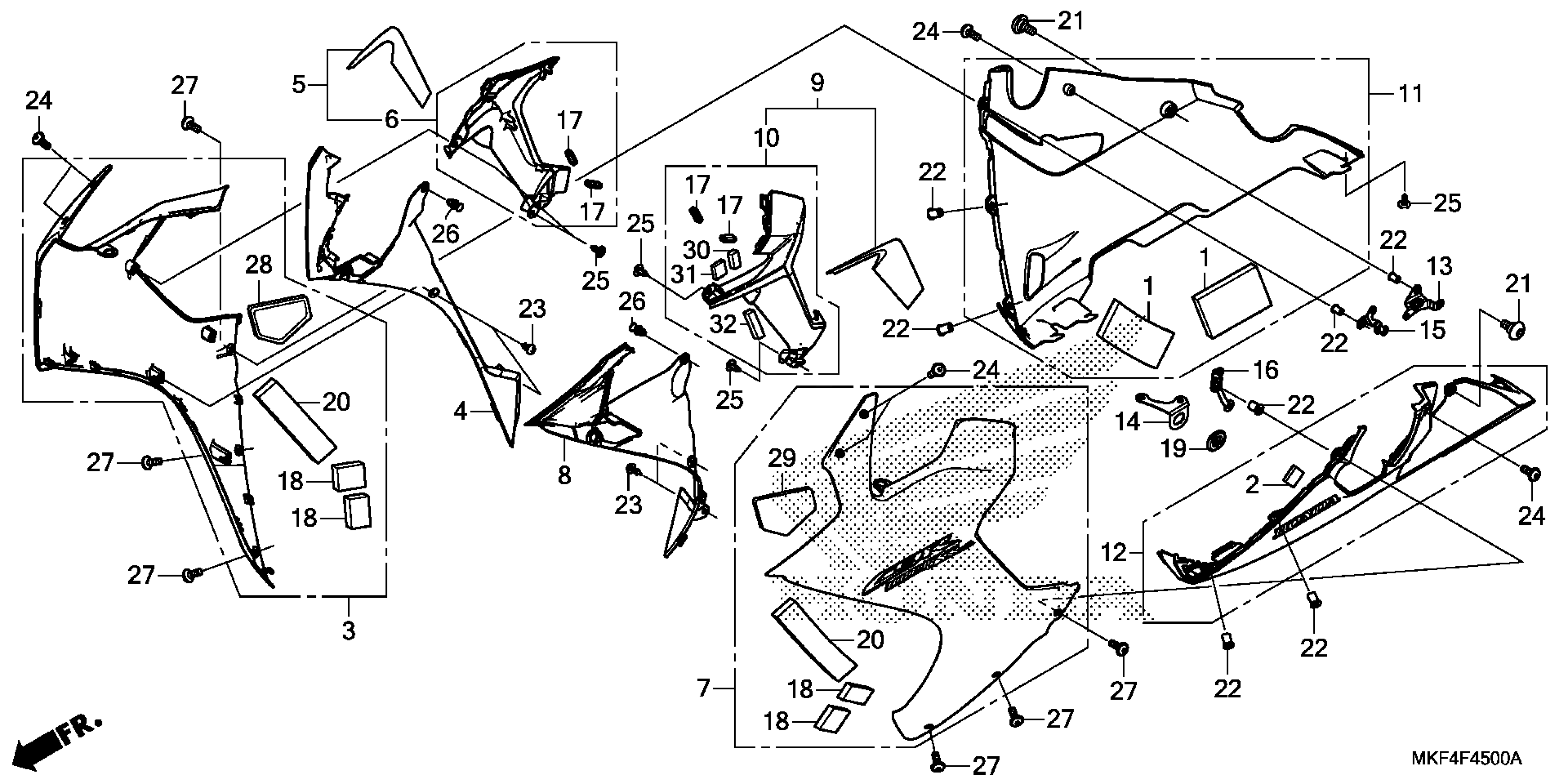 Honda CBR1000RAAC (18) MOTORCYCLE, JPM, VIN# JH2SC775-JK100001 MIDDLE COWL Diagram