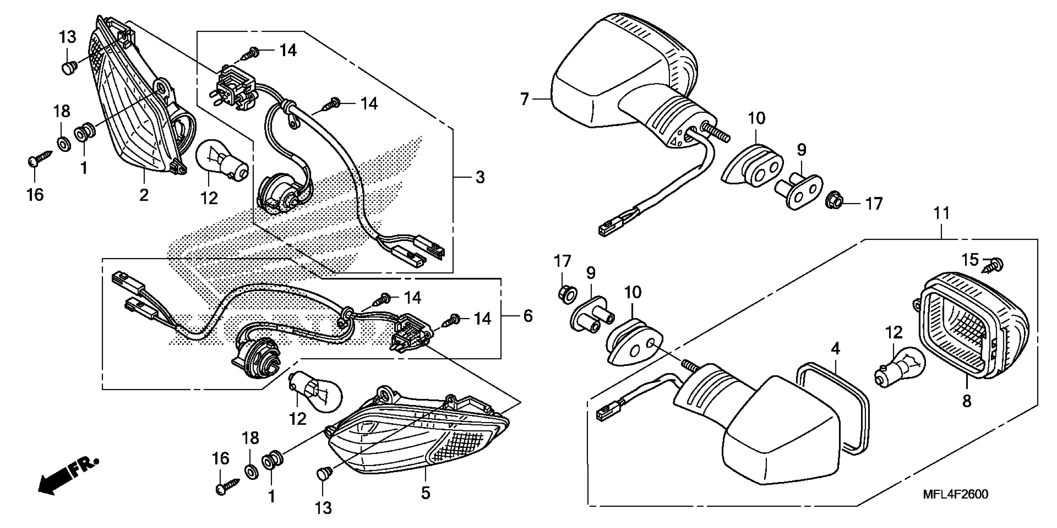 Honda CBR1000RR3AC (08) HURRICANE 1000, JPN, VIN# JH2SC595-8M000001 TO JH2SC595-8M019999 TURN SIGNAL (1) Diagram