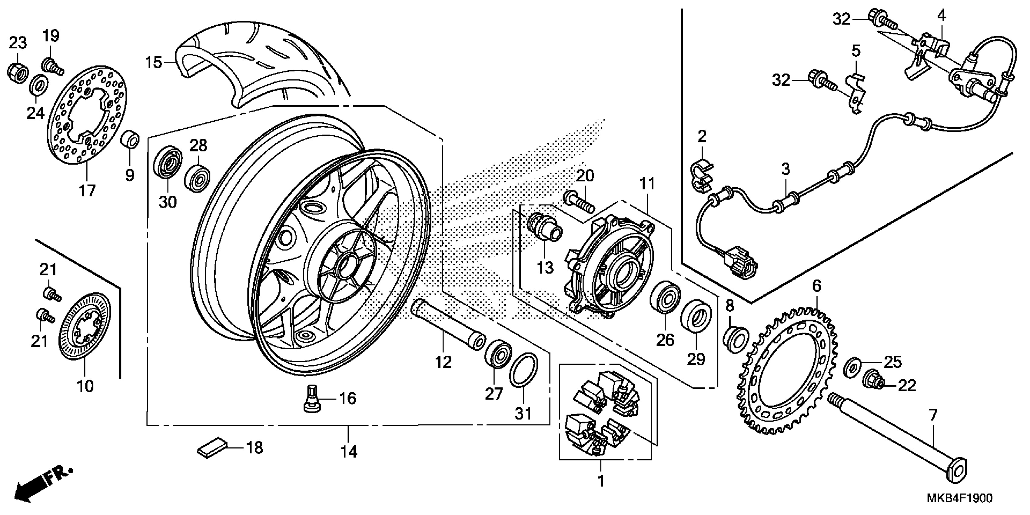 Honda CBR1000RR4A (15) MOTORCYCLE, JPN, VIN# JH2SC595-FK700001 TO JH2SC595-FK799999 REAR WHEEL Diagram