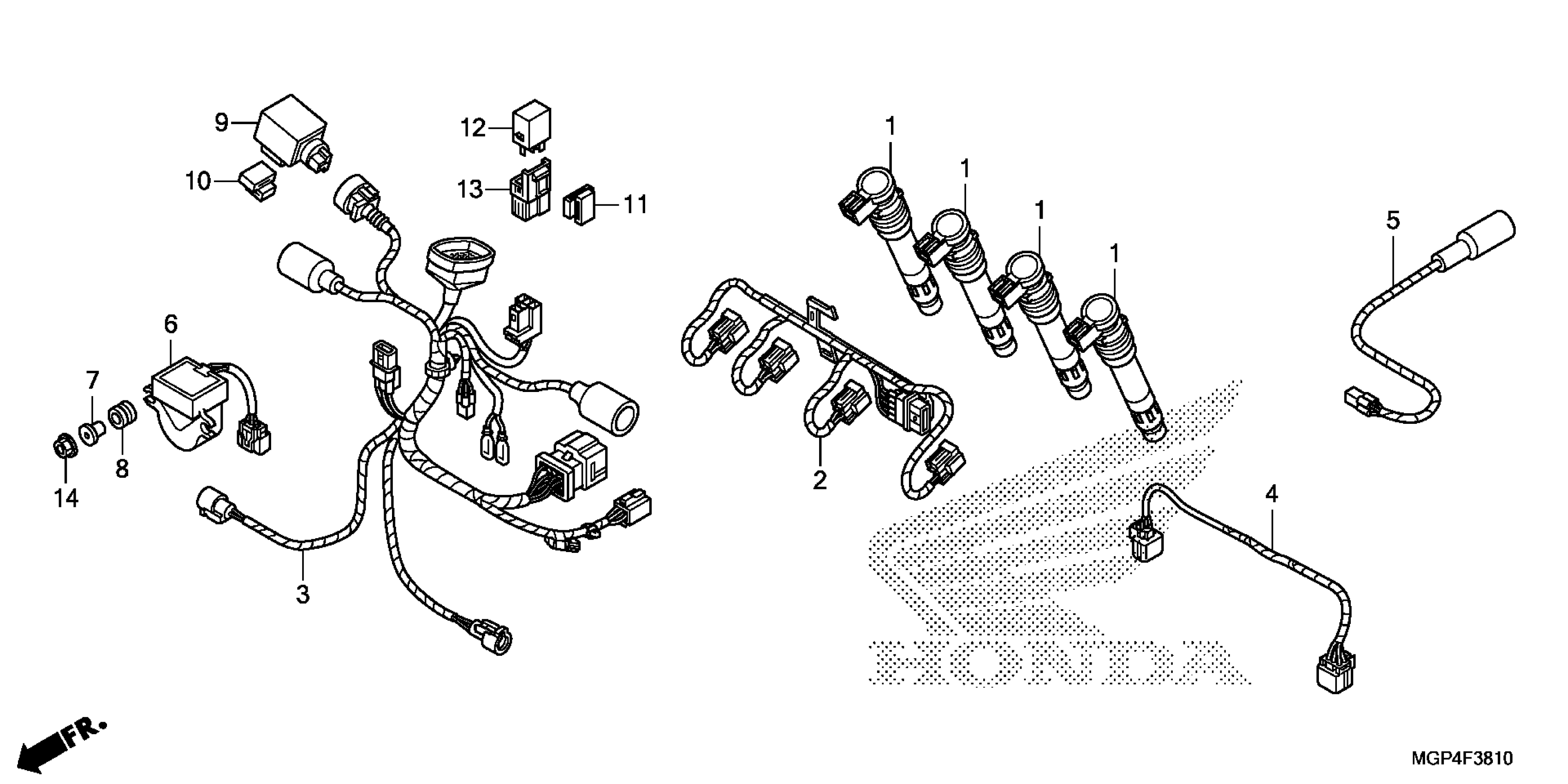 Honda CBR1000RRAC (12) CBR1000RR, JPN, VIN# JH2SC591-CK400001 TO JH2SC591-CK499999 SUB HARNESS (1) Diagram