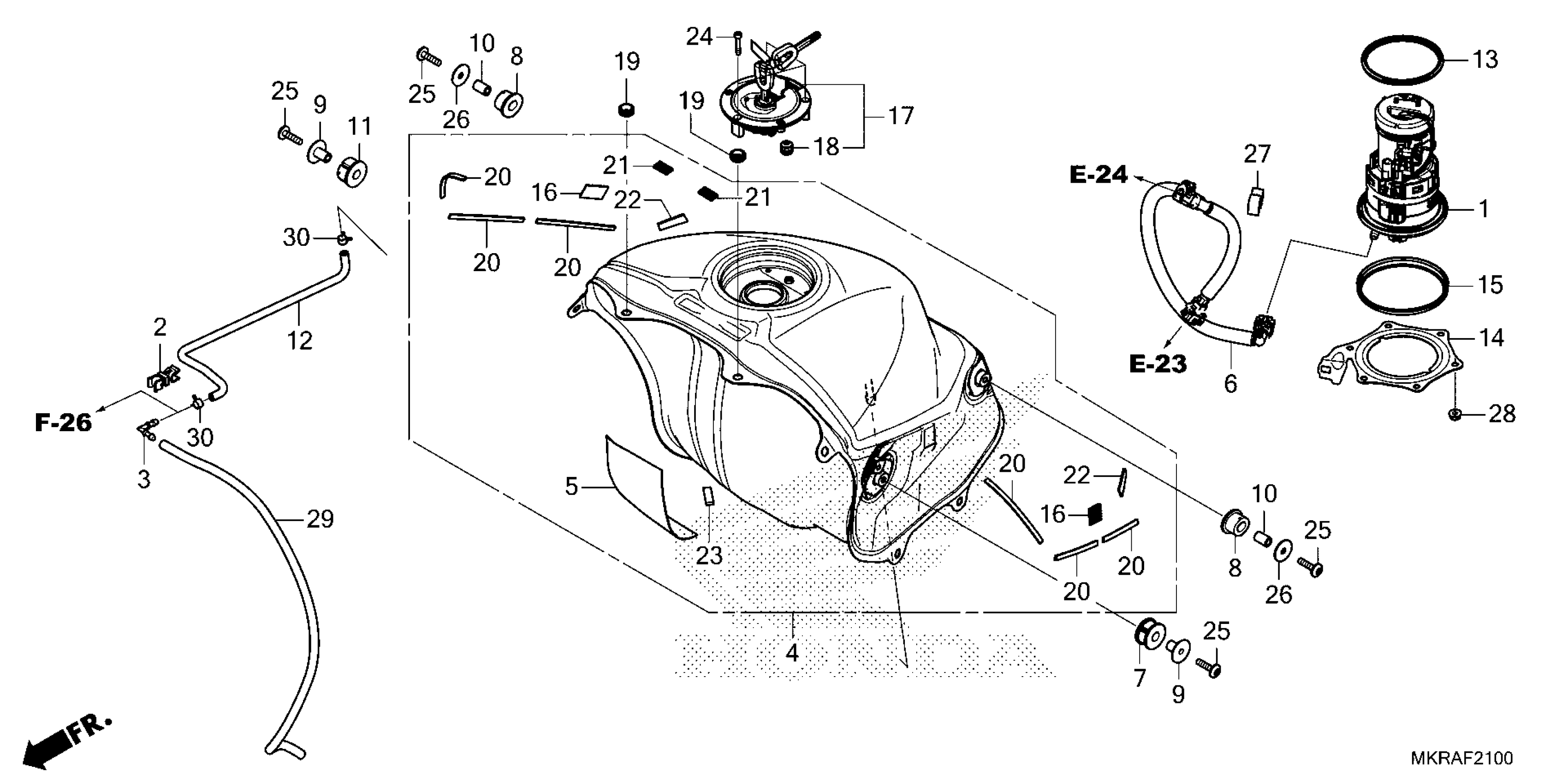 Honda CBR1000SP9AC (25) MOTORCYCLE, JPN, VIN# JH2SC821-SK400001 TO JH2SC821-SK499999 FUEL TANK@FUEL PUMP Diagram