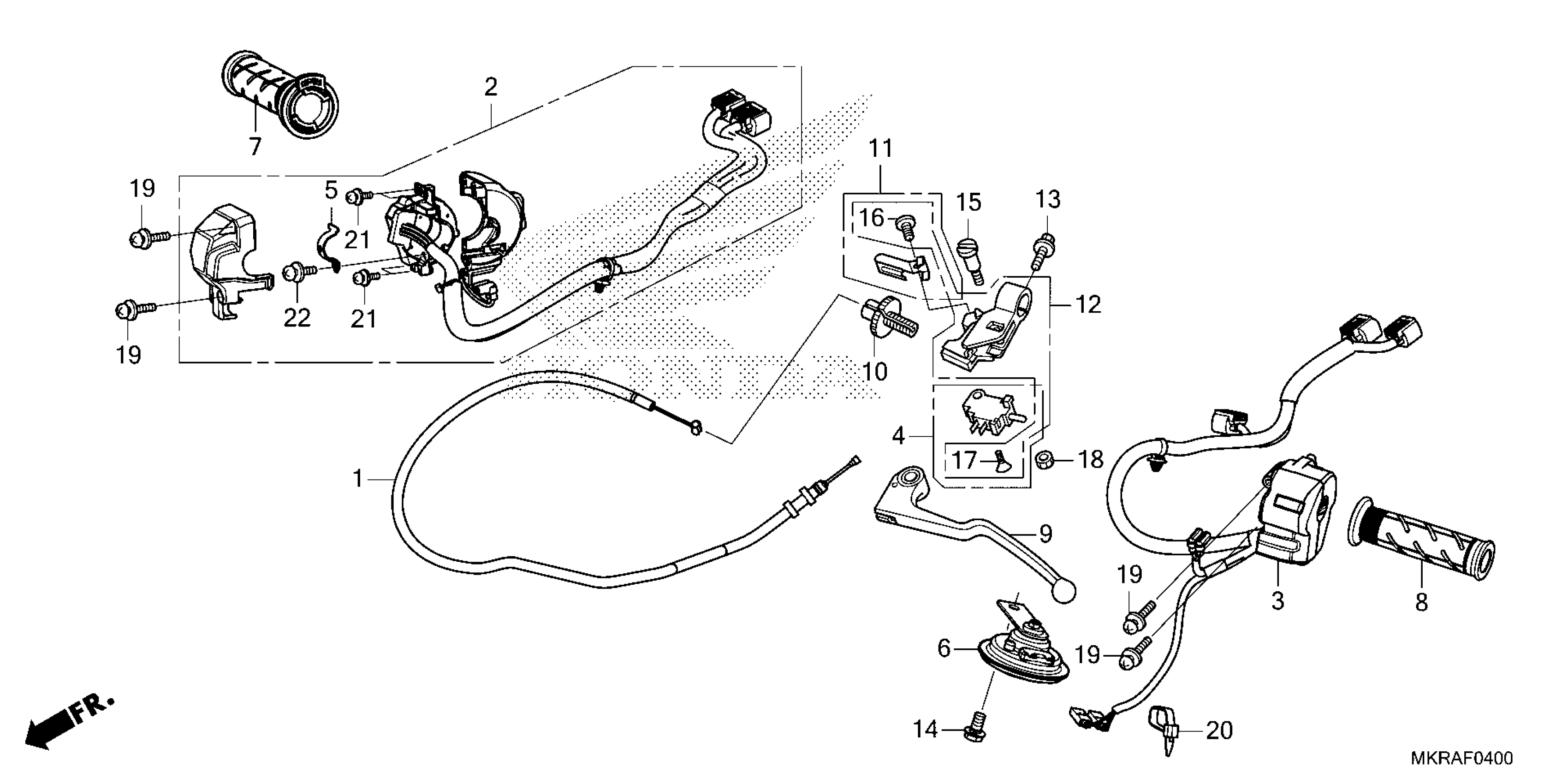 Honda CBR1000SP9AC (25) MOTORCYCLE, JPN, VIN# JH2SC821-SK400001 TO JH2SC821-SK499999 HANDLE LEVER@SWITCH@CABLE Diagram
