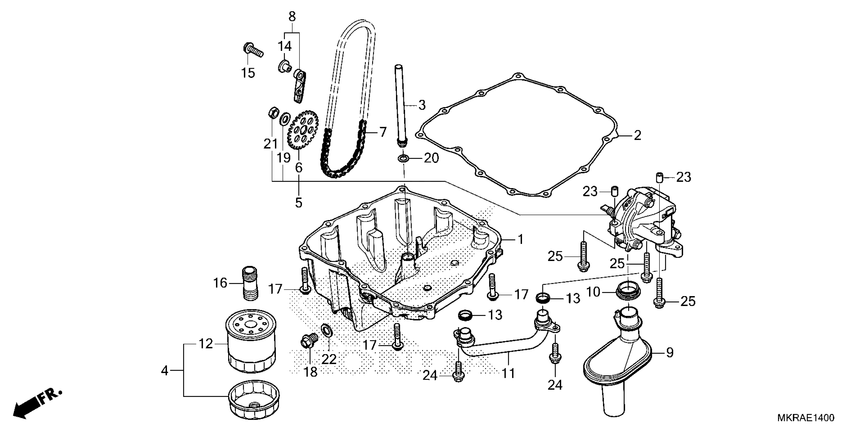 Honda CBR1000SP9AC (25) MOTORCYCLE, JPN, VIN# JH2SC821-SK400001 TO JH2SC821-SK499999 OIL PAN@OIL PUMP Diagram