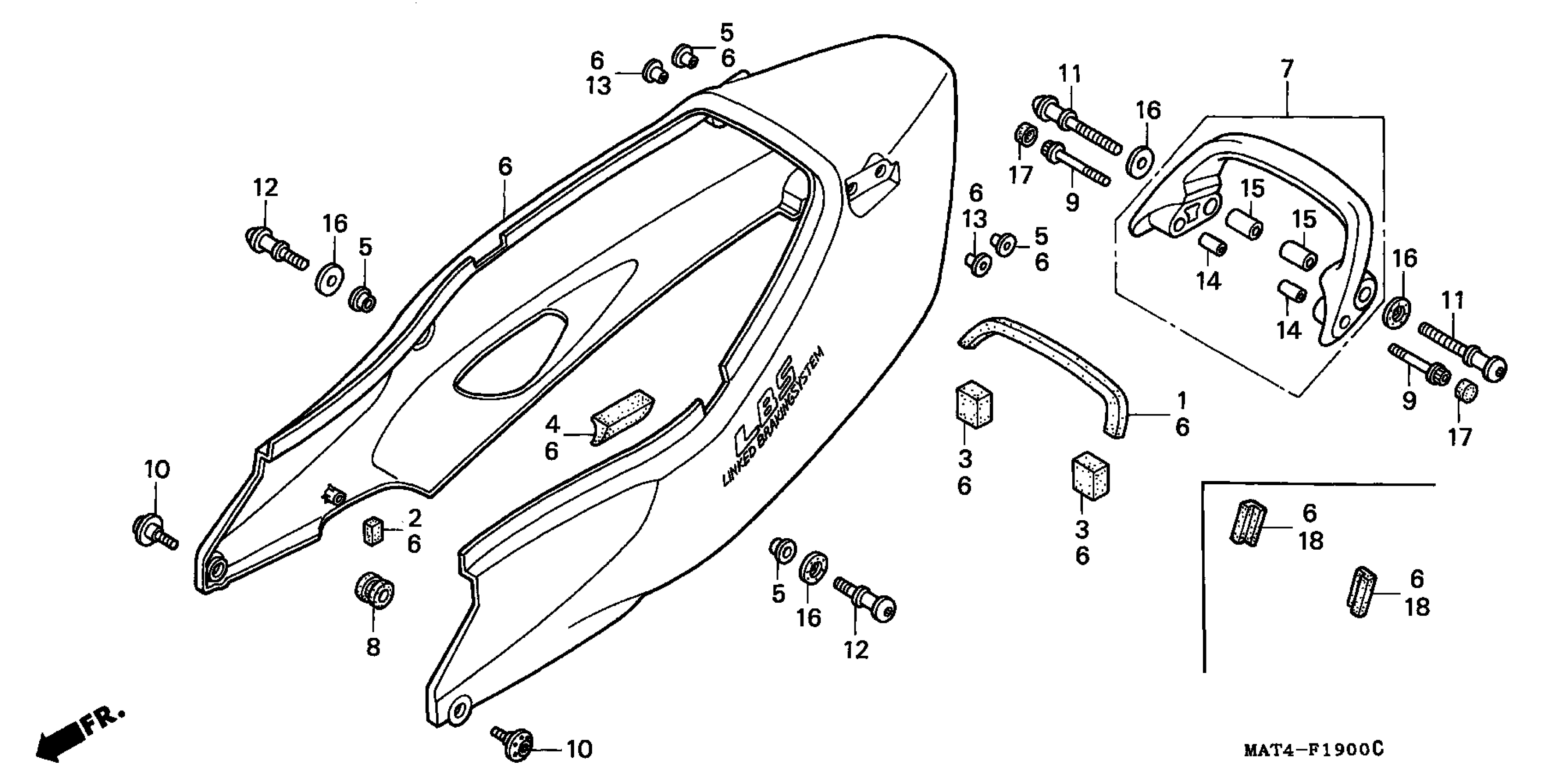 Honda CBR1100XXA (98) MOTORCYCLE, JPN, VIN# JH2SC350-WM100001 TO JH2SC350-WM101089 REAR COWL Diagram