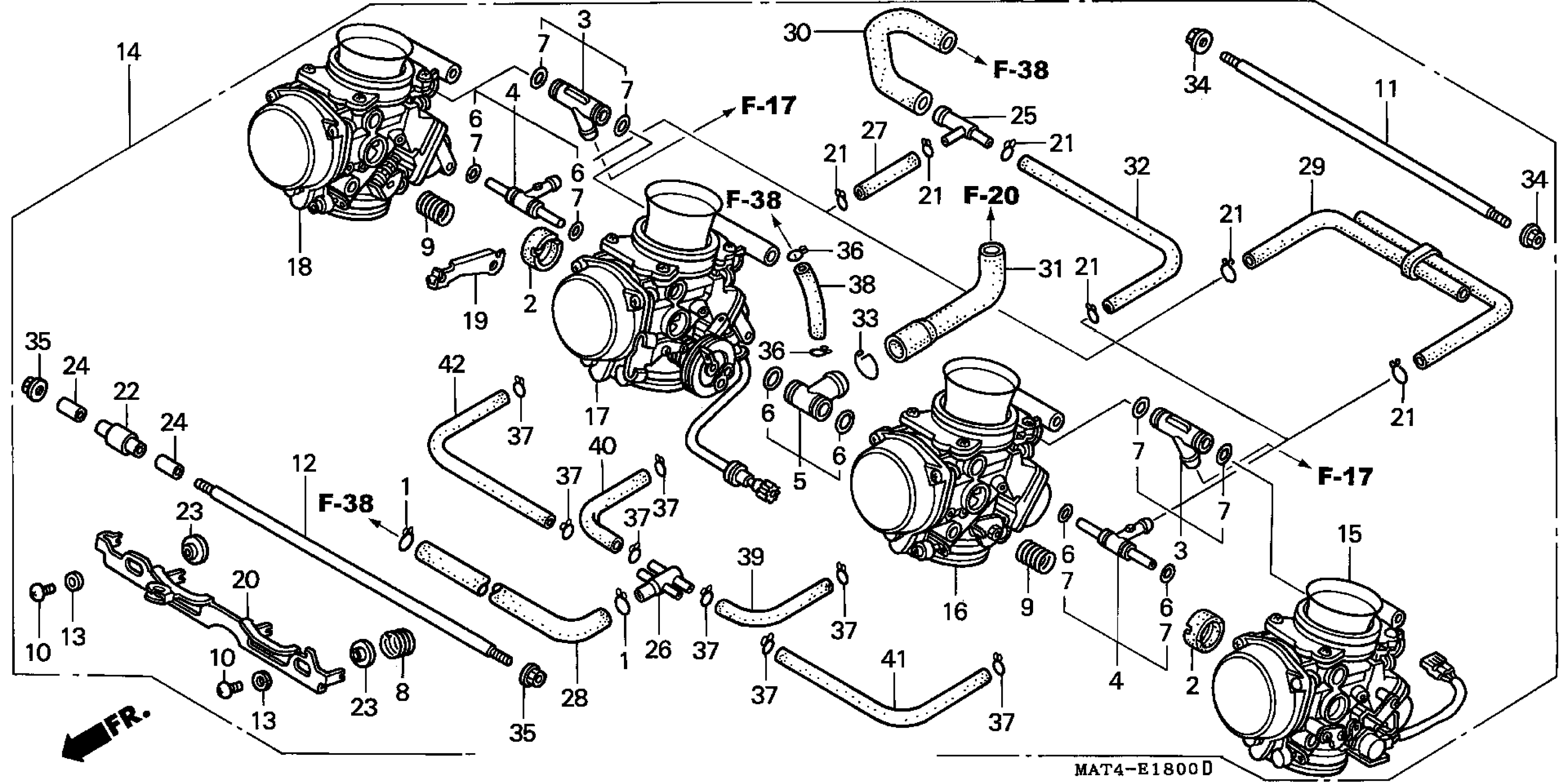 Honda CBR1100XXAC (98) MOTORCYCLE, JPN, VIN# JH2SC351-WM100001 TO JH2SC351-WM100160 CARBURETOR ASSY. Diagram