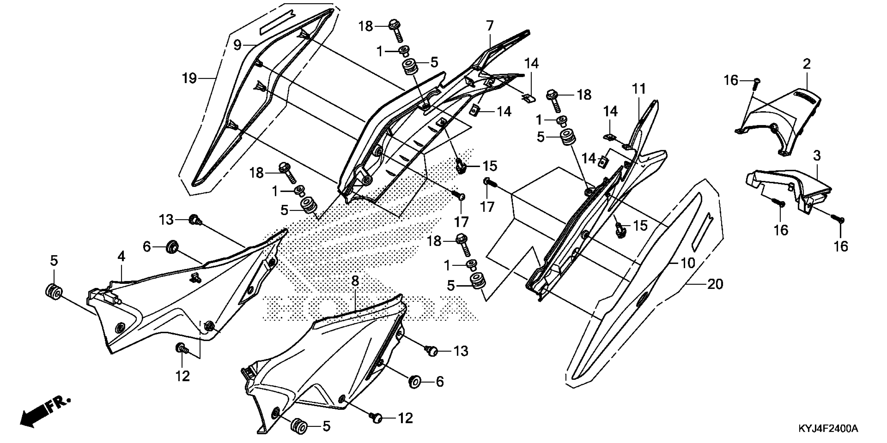 Honda CBR250RAAC (11) CBR250RA, THA, VIN# MLHMC411-B5000001 TO MLHMC411-B5099999 SIDE COVER@REAR COWL Diagram