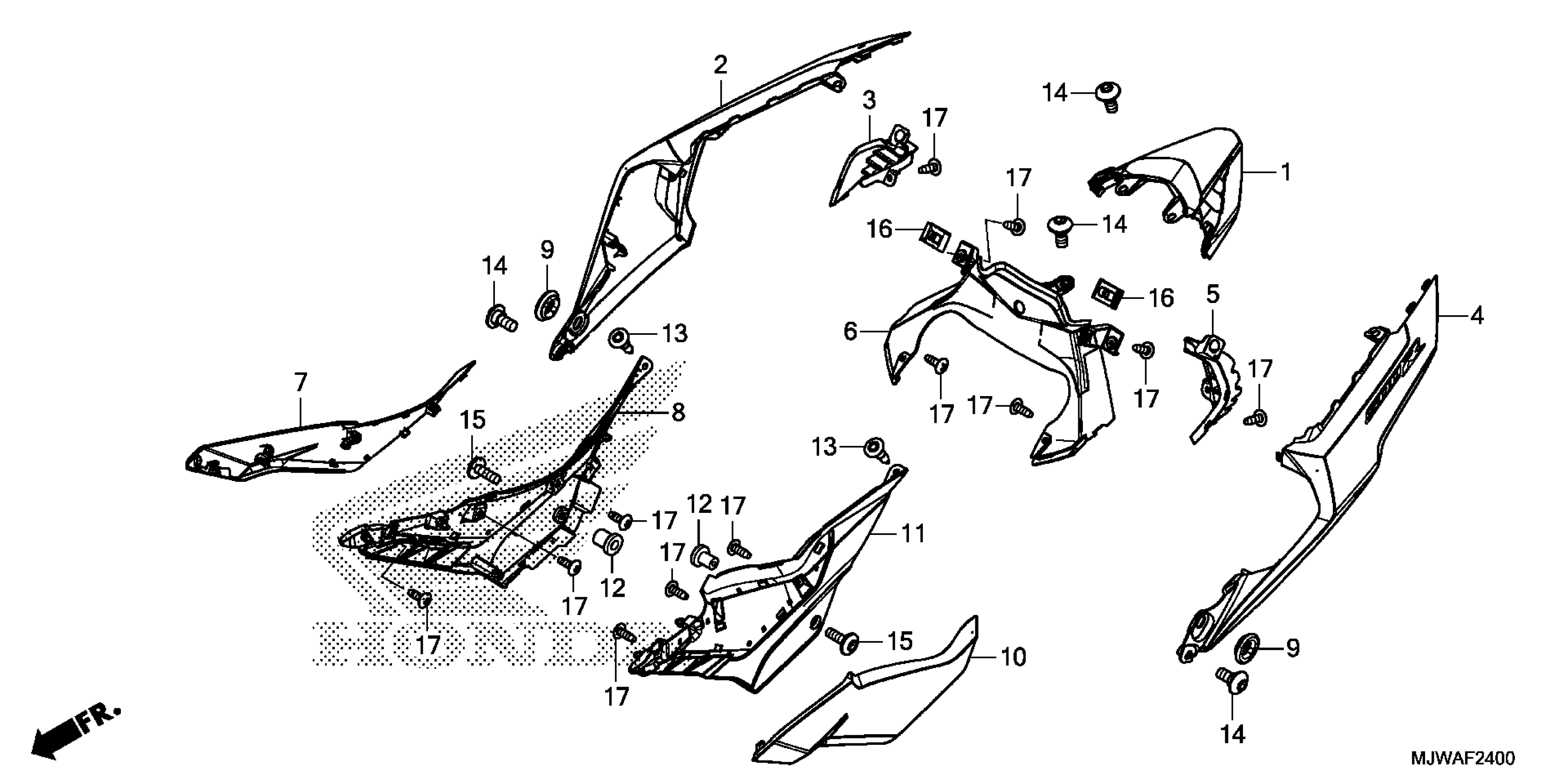 Honda CBR500R2AC (18) MOTORCYCLE, THA, VIN# MLHPC441-J5500001 SIDE COVER@REAR COWL Diagram
