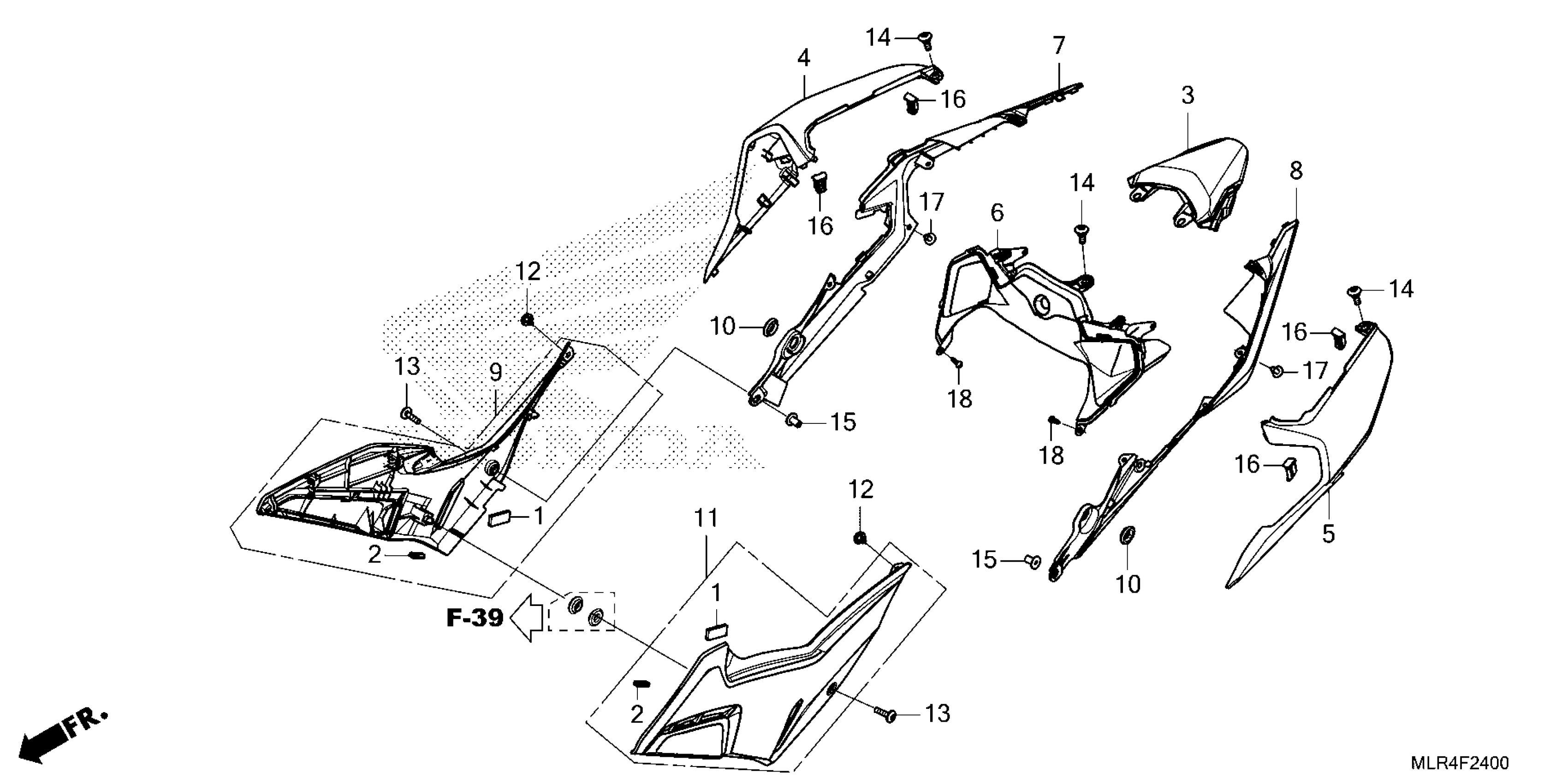Honda CBR500RA3AC (25) MOTORCYCLE, THA, VIN# MLHPC705-S5100001 TO MLHPC705-S5199999 SIDE COVER@REAR COWL Diagram