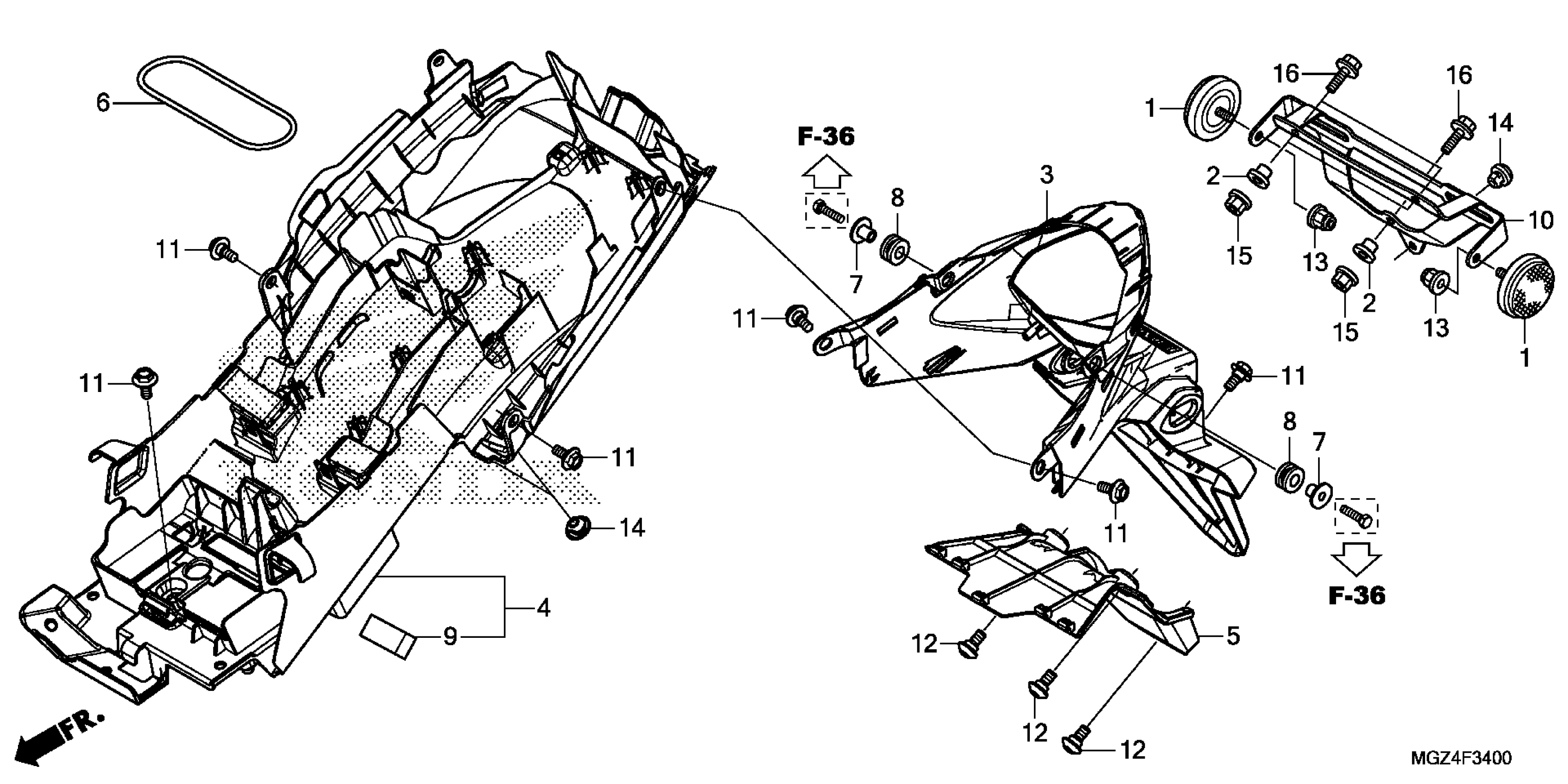 Honda CBR500RAA (14) MOTORCYCLE, THA, VIN# MLHPC445-E5100001 TO MLHPC445-E5199999 REAR FENDER Diagram