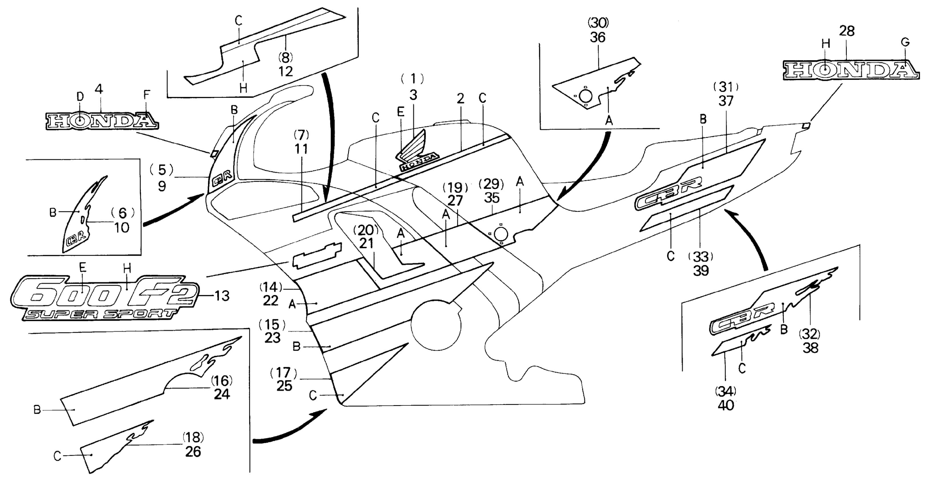 Honda CBR600F2A (92) SUPER SPORT, JPN, VIN# JH2PC250-NM100001 TO JH2PC250-NM107517 F2 STRIPE 92 Diagram