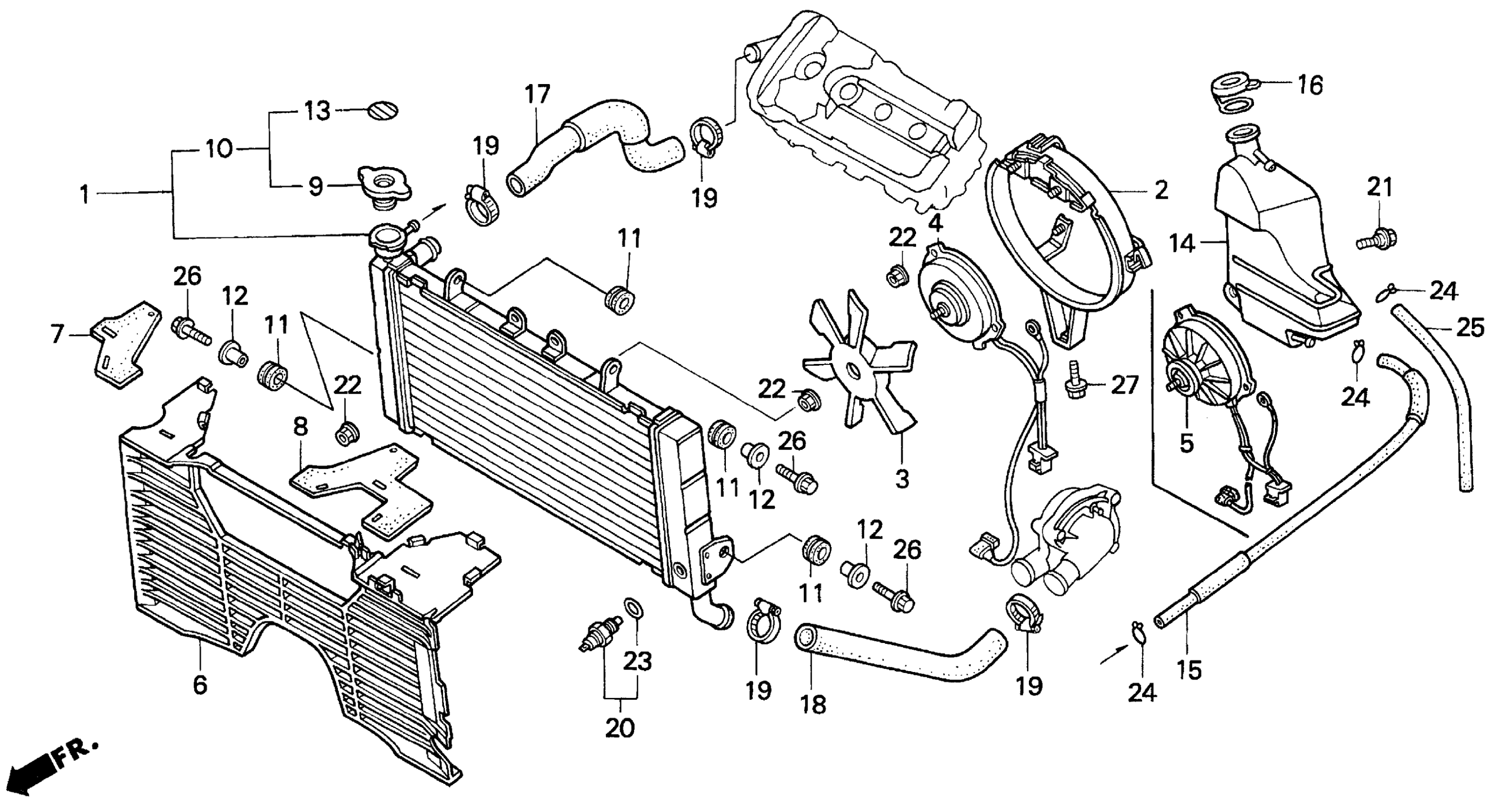Honda CBR600F2A (93) SUPER SPORT, JPN, VIN# JH2PC250-PM200003 TO JH2PC250-PM207591 F2 RADIATOR 91-94 Diagram