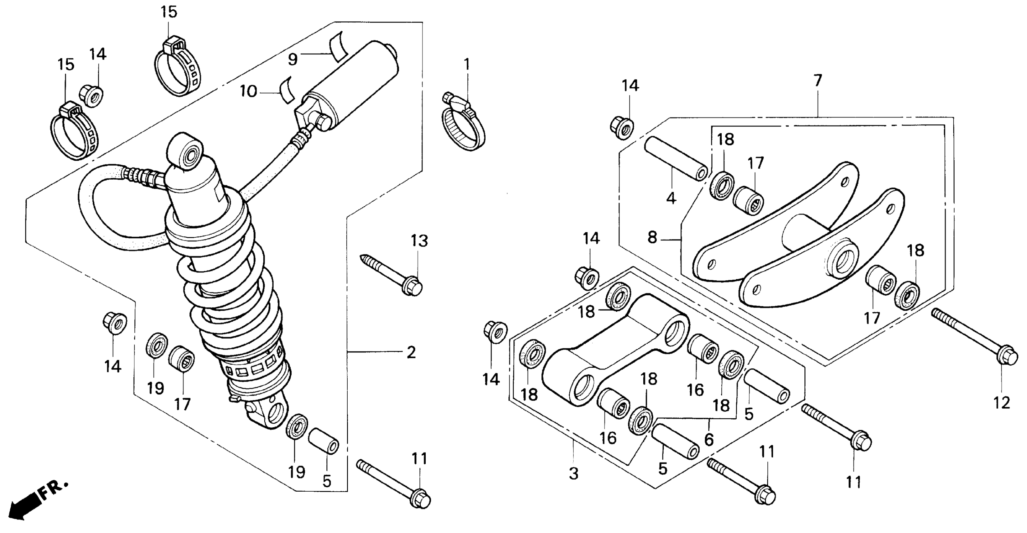 Honda CBR600F2A (94) SUPER SPORT, JPN, VIN# JH2PC250-RM300001 TO JH2PC250-RM308445 F2 F3 REAR SHOCK ABSORBER 94-96 Diagram