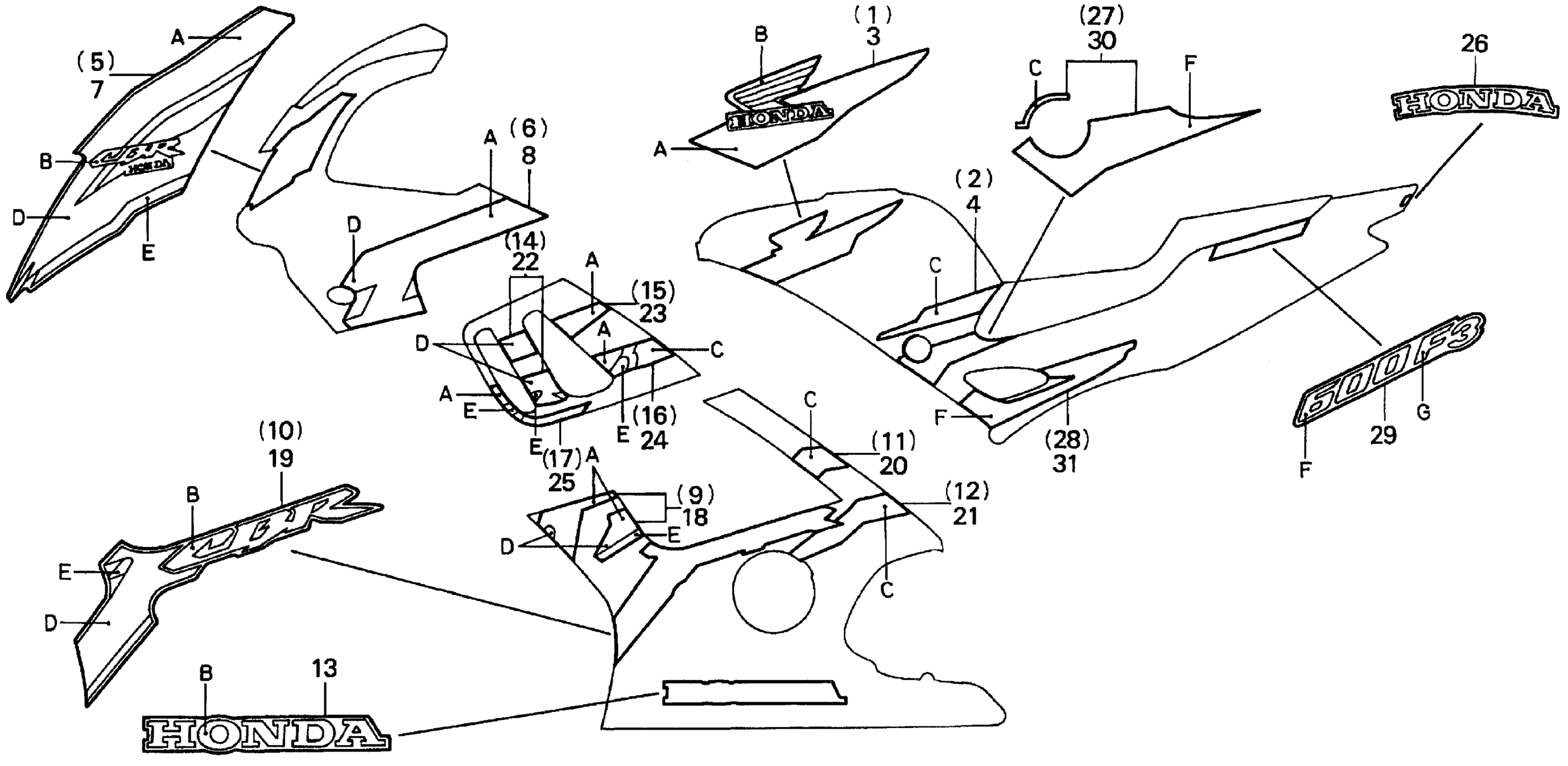 Honda CBR600F3A (97) MOTORCYCLE, JPN, VIN# JH2PC250-VM600001 F3 STRIPE Diagram