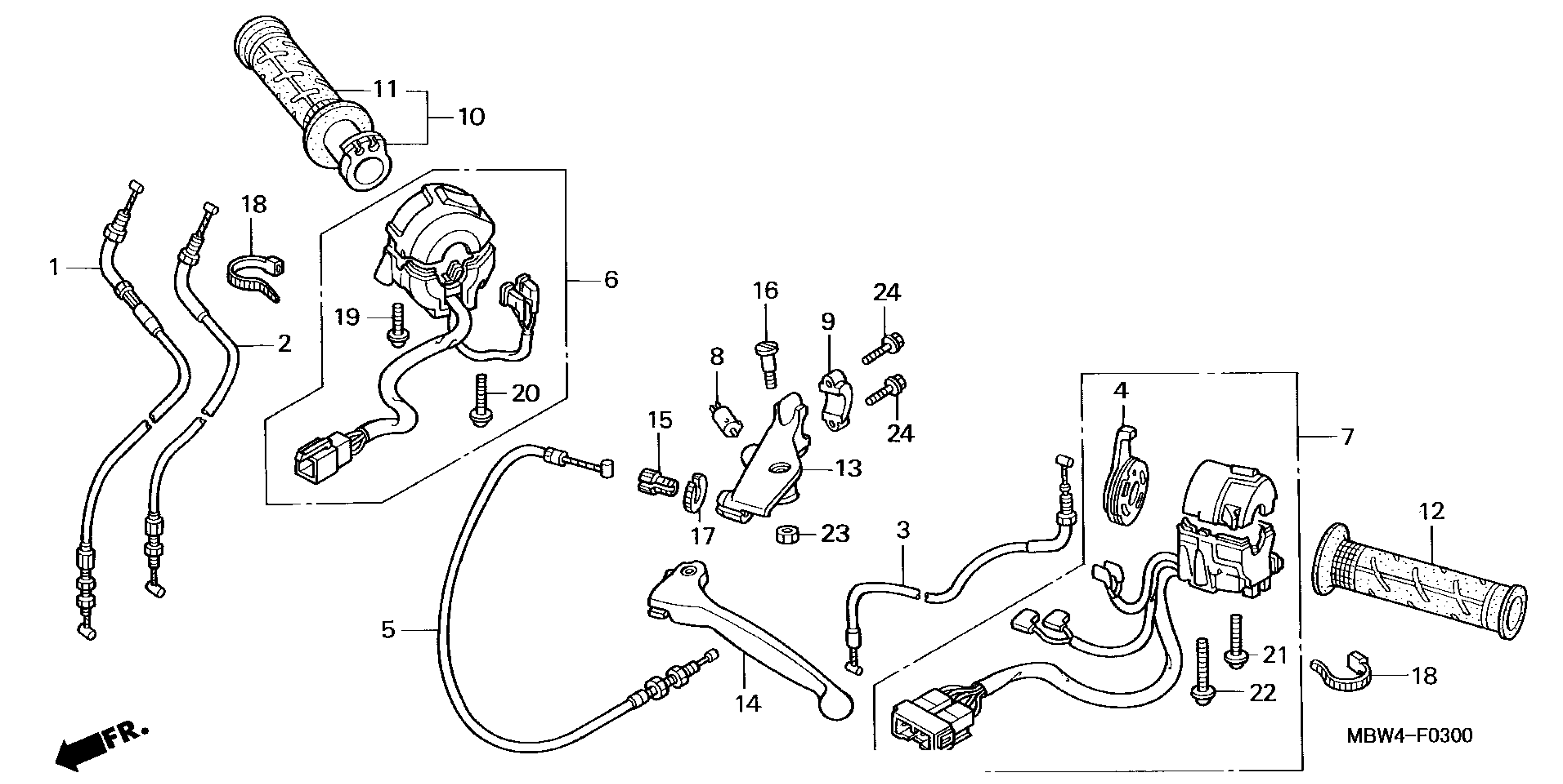 Honda CBR600F4A (00) CBR600F4I, JPN, VIN# JH2PC350-YM100001 TO JH2PC350-YM106777 HANDLE LEVER + SWITCH + CABLE ('99-'00) Diagram