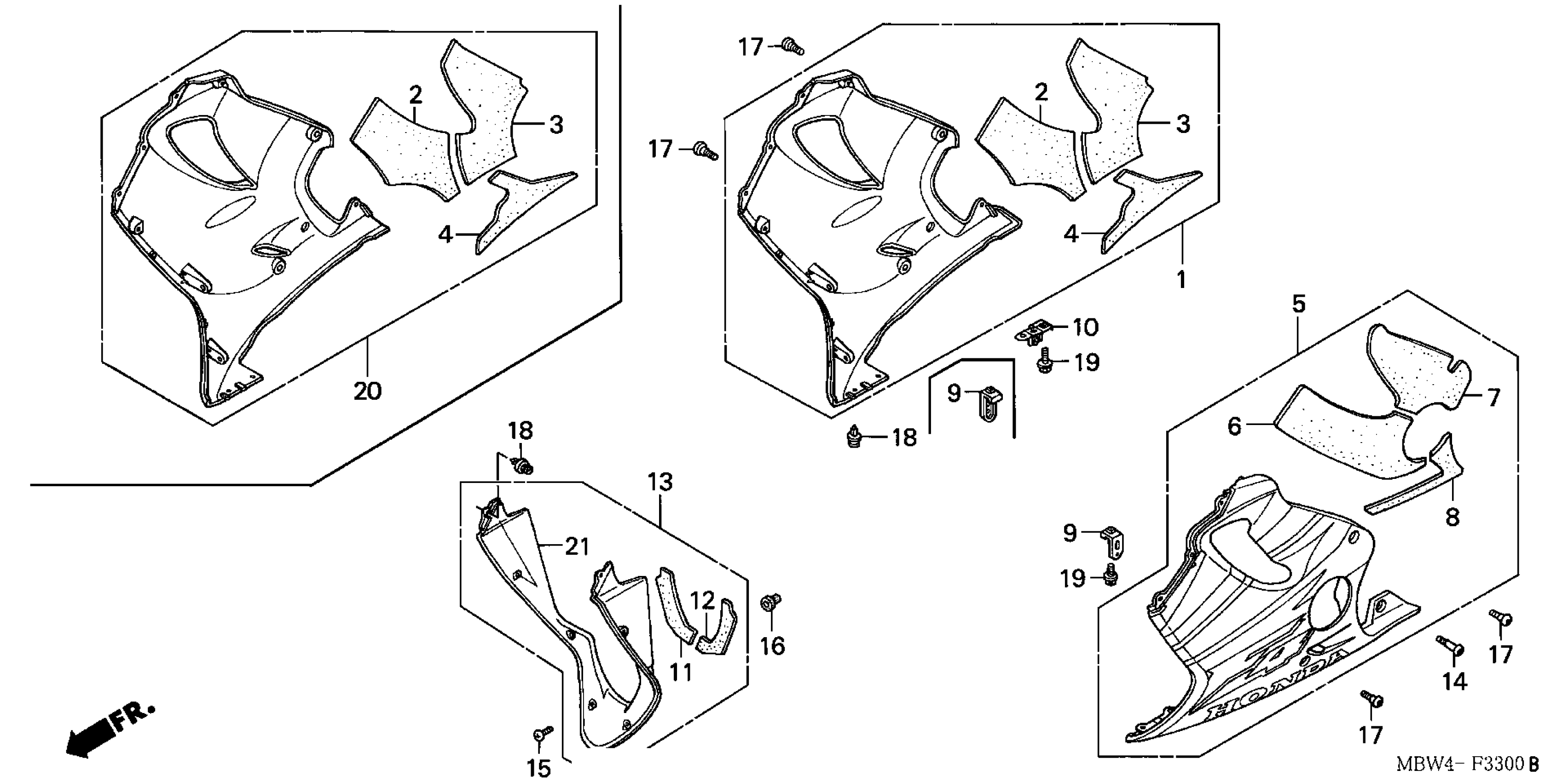 Honda CBR600F4A (00) CBR600F4I, JPN, VIN# JH2PC350-YM100001 TO JH2PC350-YM106777 LOWER COWL Diagram