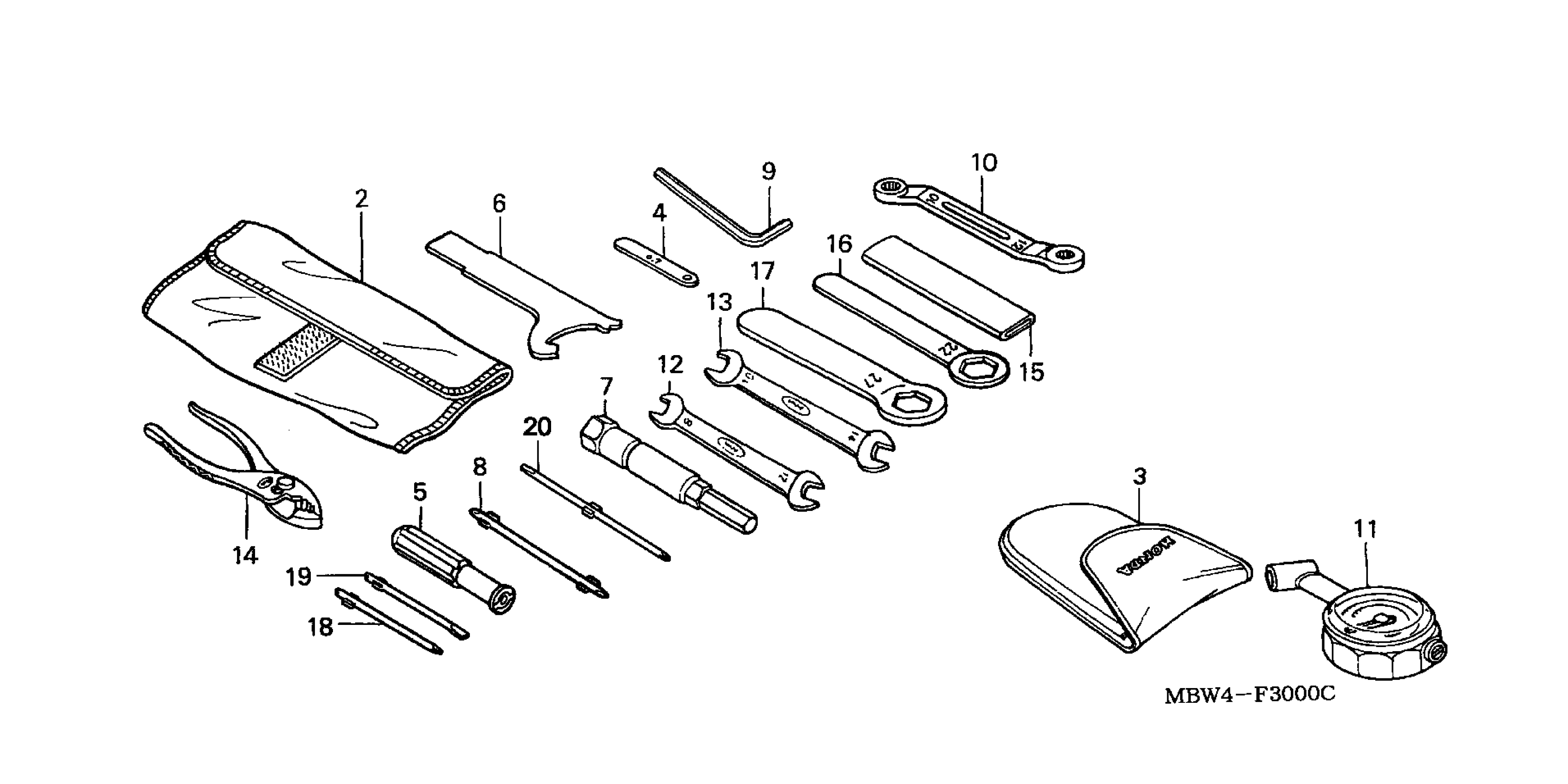Honda CBR600F4A (00) CBR600F4I, JPN, VIN# JH2PC350-YM100001 TO JH2PC350-YM106777 TOOLS Diagram