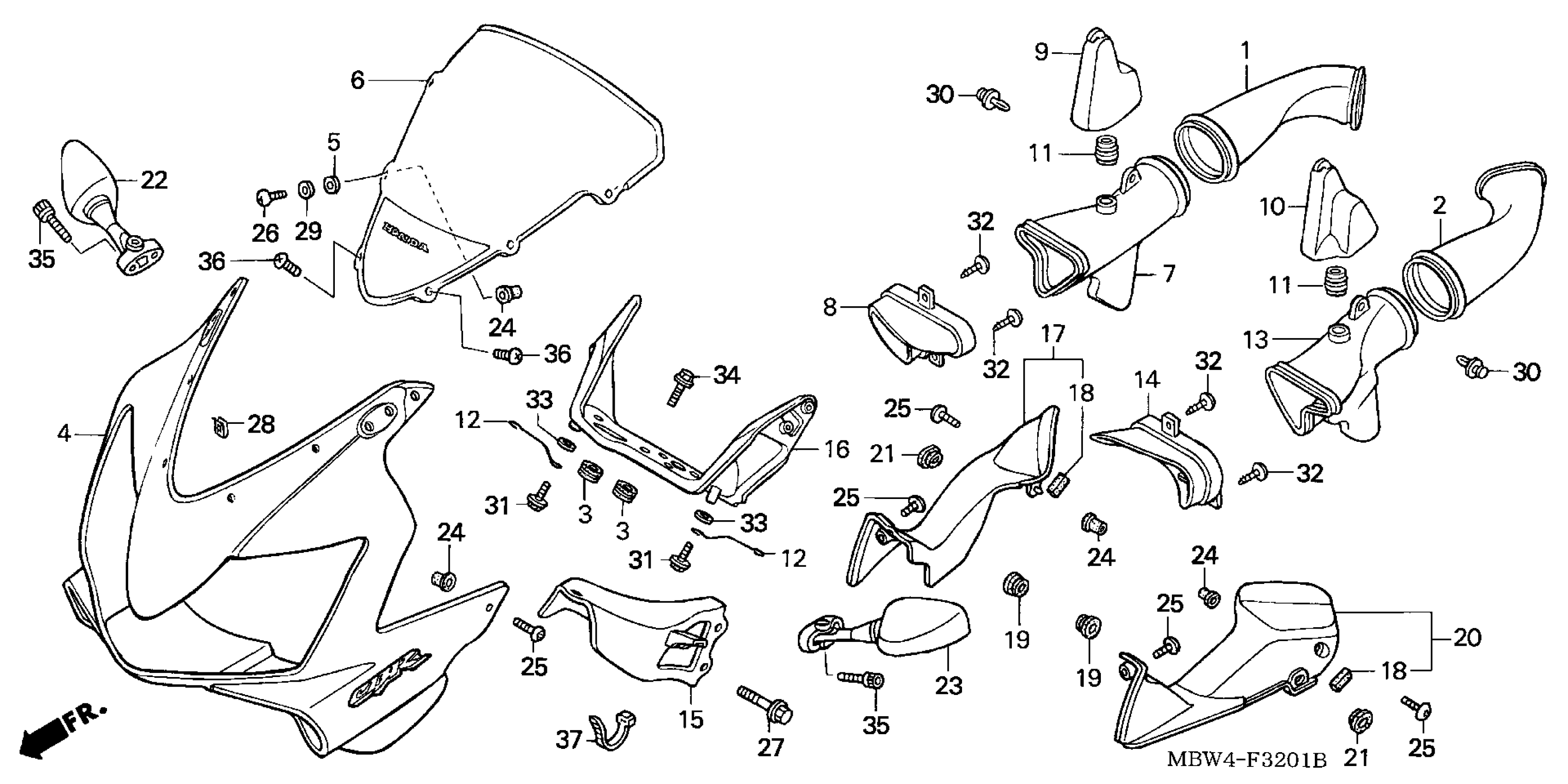 Honda CBR600F4A (05) CBR600F4I, JPN, VIN# JH2PC350-5M600001 TO JH2PC350-5M699999 UPPER COWL ('01-'06) Diagram