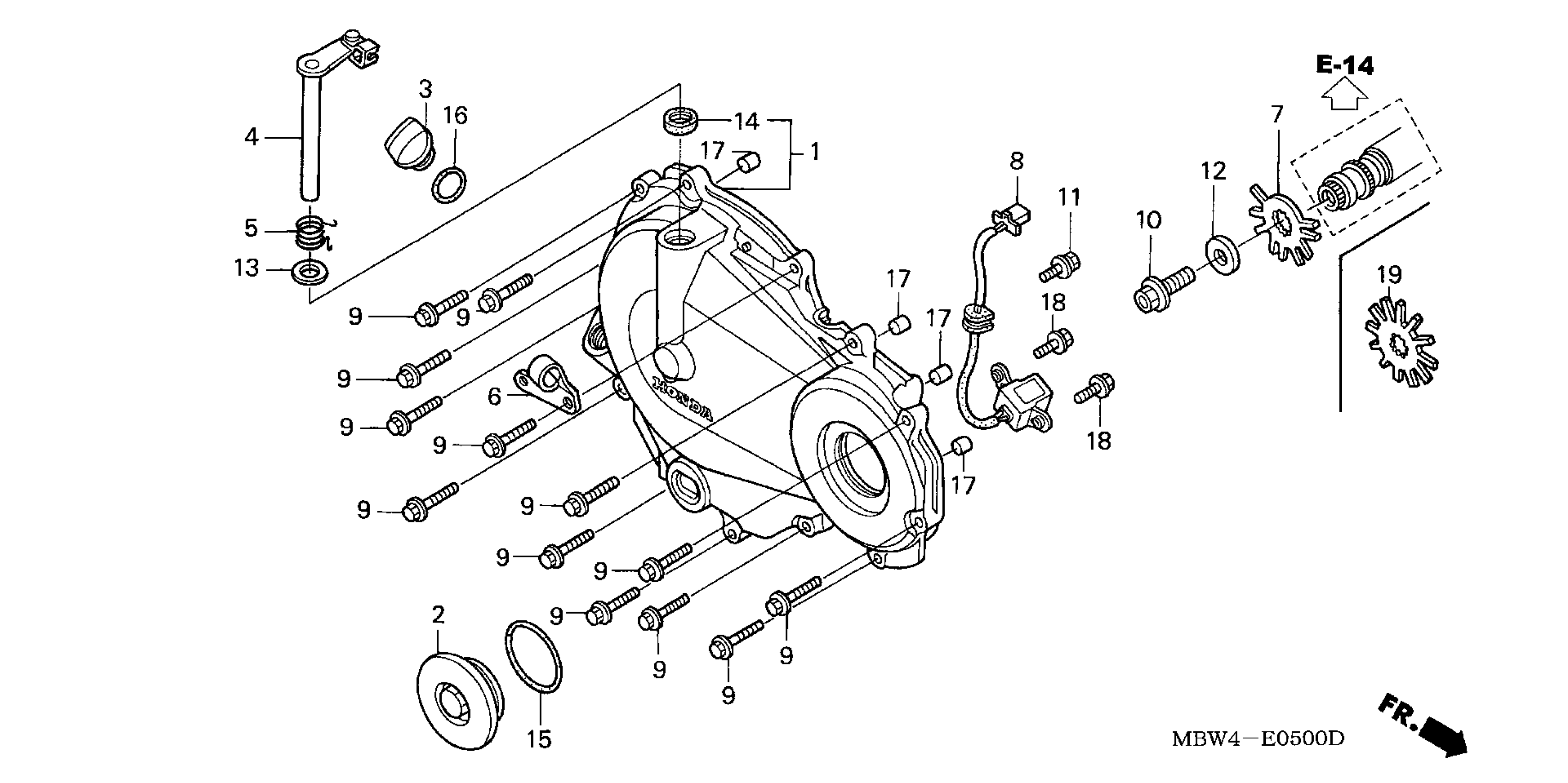 Honda CBR600F4A (99) CBR600F4I, JPN, VIN# JH2PC350-XM000001 TO JH2PC350-XM007194 RIGHT CRANKCASE COVER Diagram