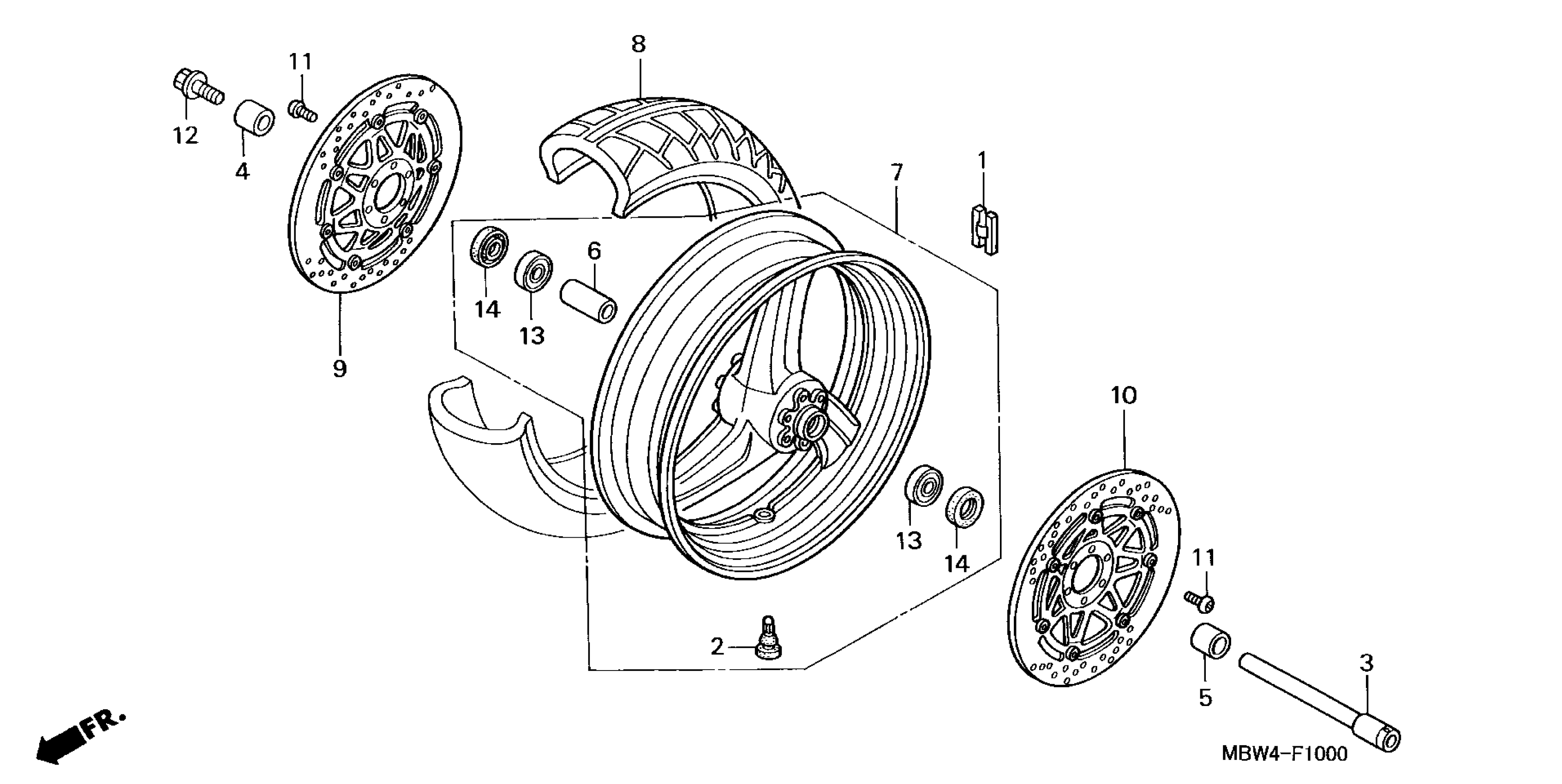 Honda CBR600F4AC (00) CBR600F4I, JPN, VIN# JH2PC351-YM100001 TO JH2PC351-YM100930 FRONT WHEEL ('99-'00) Diagram