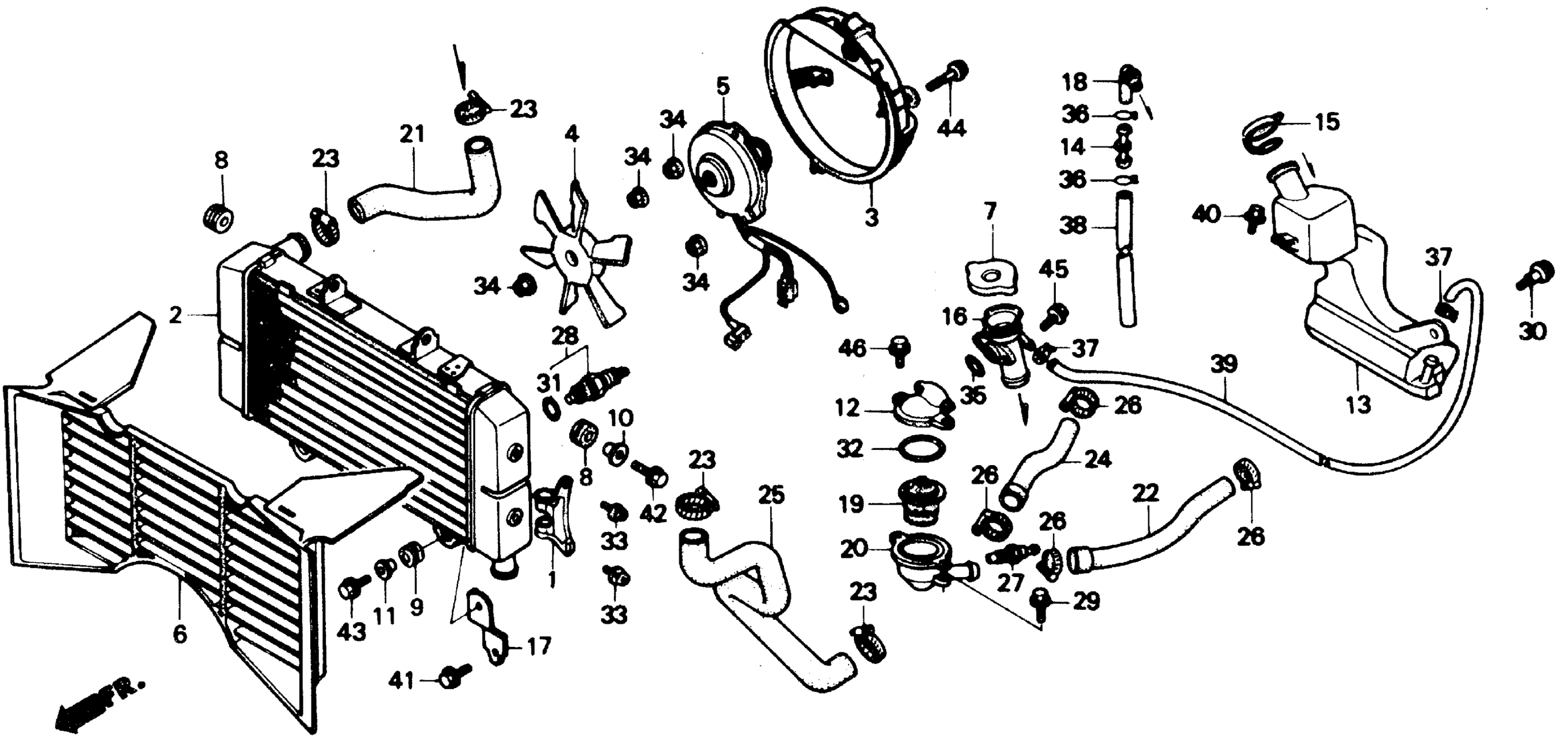 Honda CBR600FA (87) HURRICANE 600, JPN, VIN# JH2PC190-HM000014 TO JH2PC190-HM008281 RADIATOR Diagram